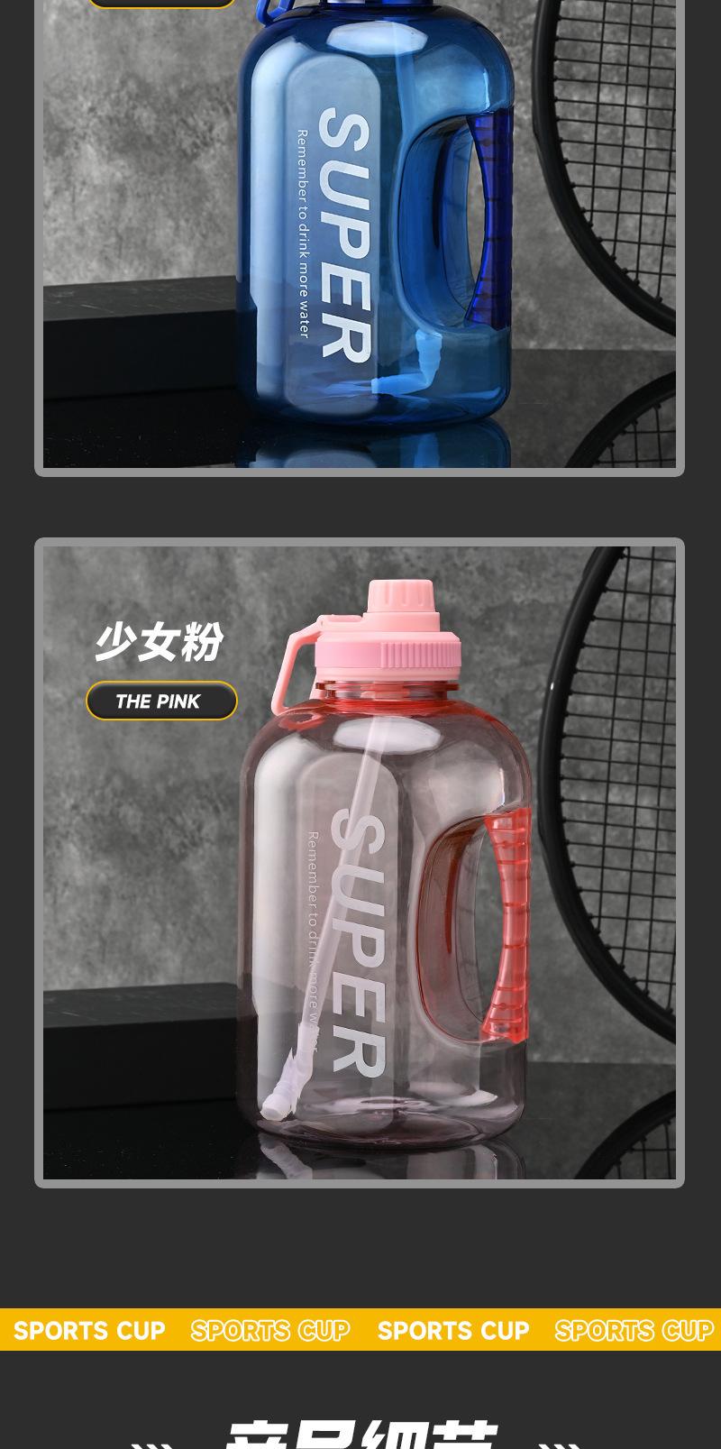 Cubo Ton-Ton de Gran Capacidad Verano Exterior Portátil Vaso de Agua Fría de Gran Capacidad con Vaso con Pajita Fitness Botella de Agua Deportiva para Hombres y Mujeres