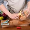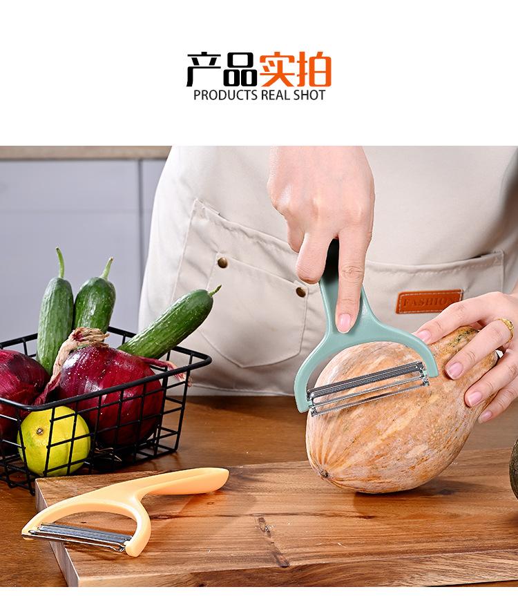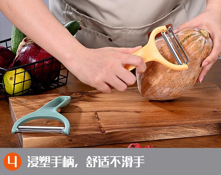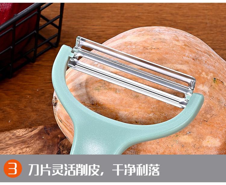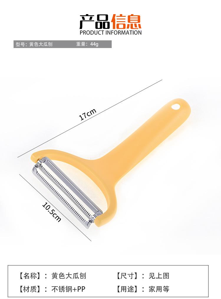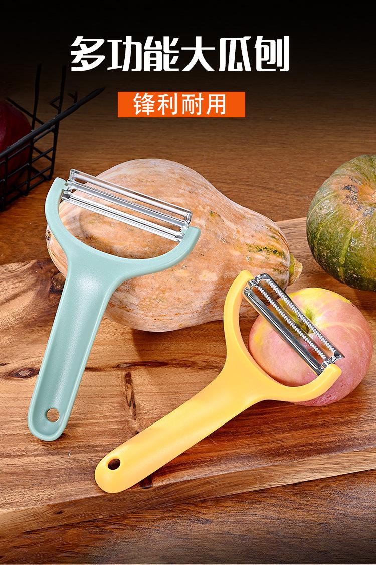 Pelador de melones de acero inoxidable con mango grande y doble hoja, para uso doméstico, disponible en stock.