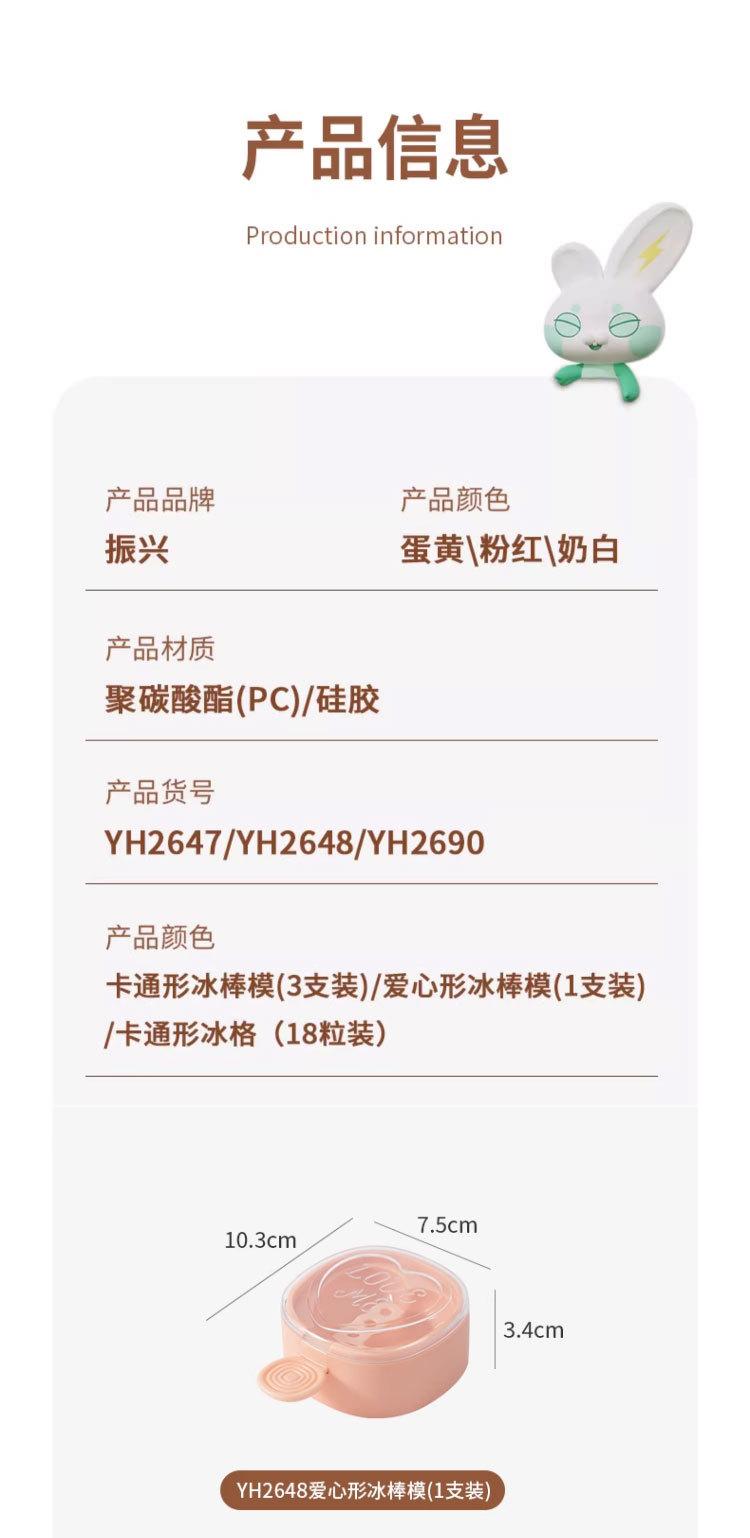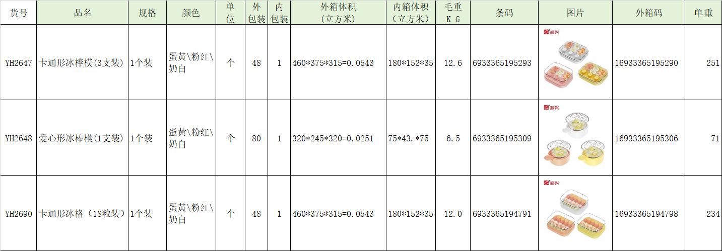 Yh2647 cartoon-shaped popsicle mold (pack of 3), Yh2648 love-shaped popsicle mold (1 piece), Yh2690 cartoon-sh...