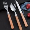 Vajilla de acero inoxidable 304 con mango de bambú creativo transfronterizo, cuchillo, tenedor y cuchara, apto para carne occidental.