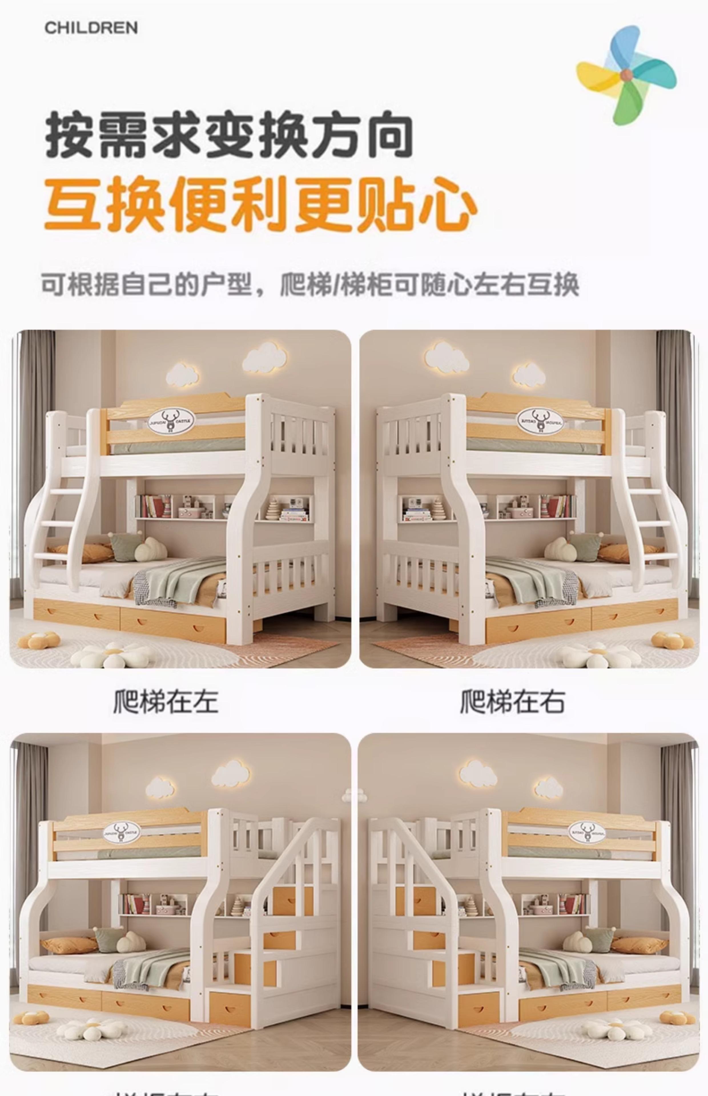 ☆★Fawn style (white) ladder cabinet 100 on top and 120 on bottom comes with bookshelf + drawer + mattress [installation included]☆★