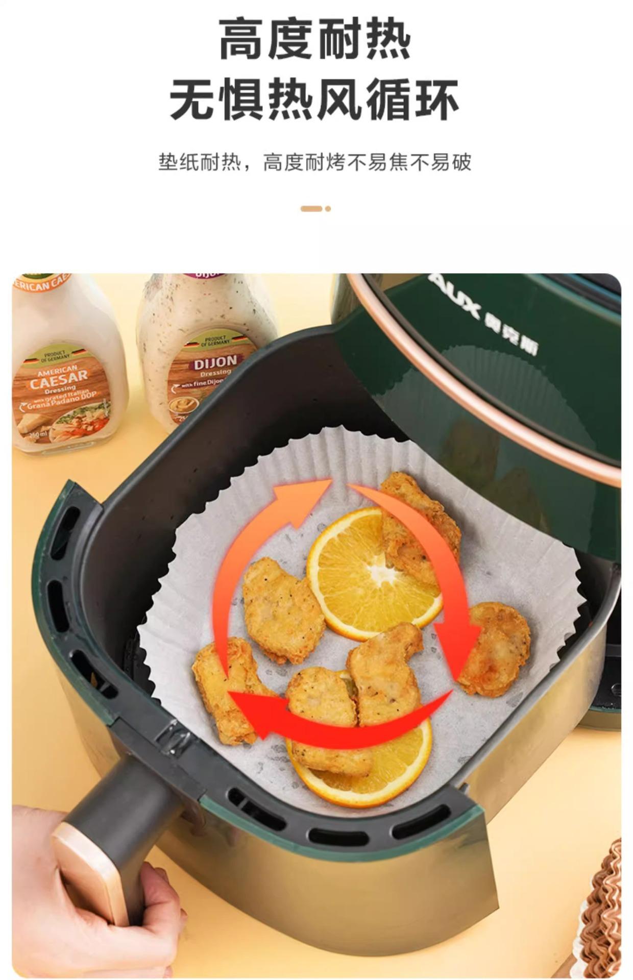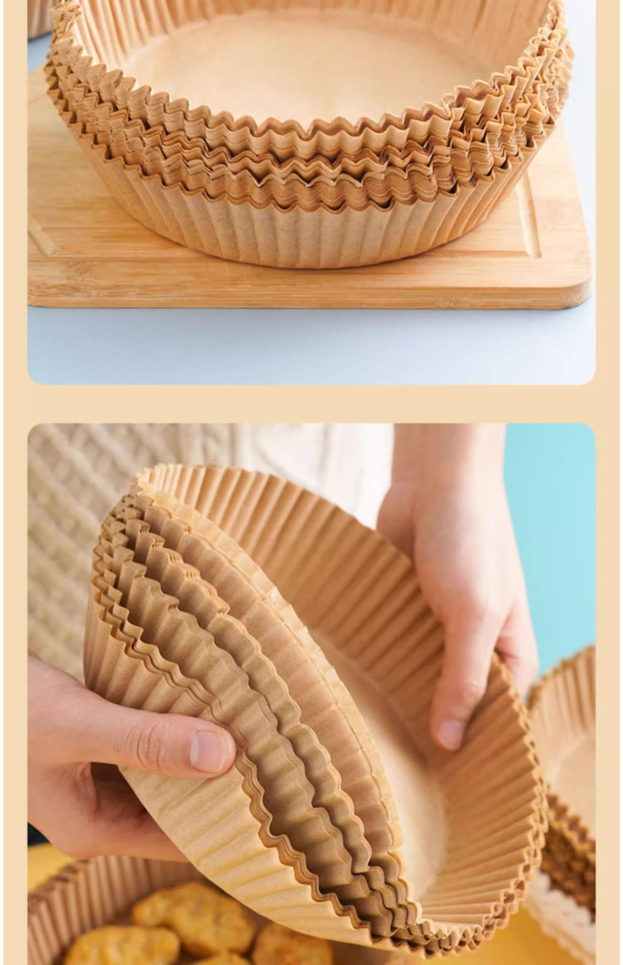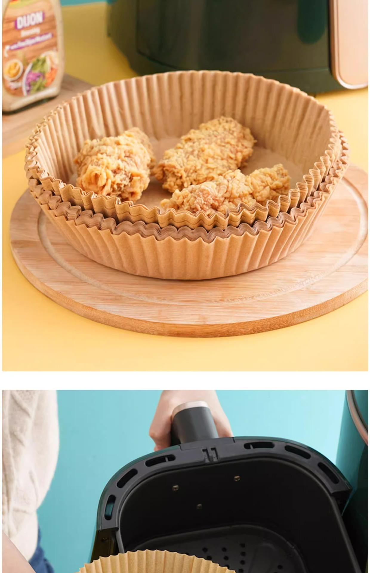 Plato de papel especial para freidora de aire doméstica, resistente a altas temperaturas, absorbente de aceite, para hornear alimentos en horno, papel de silicona para aceite, barbacoa, redondo