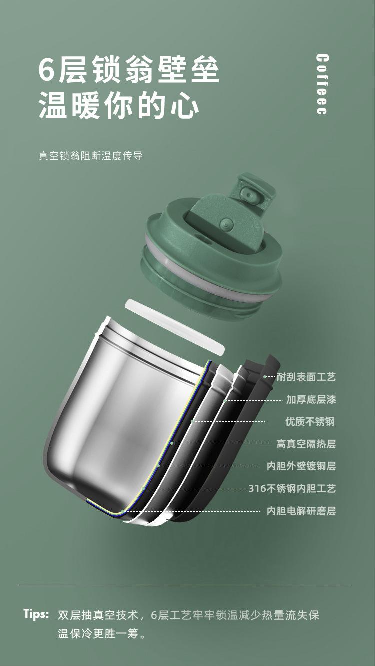 Minitaza de café B01, pequeña y compacta. Incorpora un forro interior elástico 316 y un proceso de moldeo por pulverización, que la hace resistente a la decoloración y ofrece una textura de alta calidad.