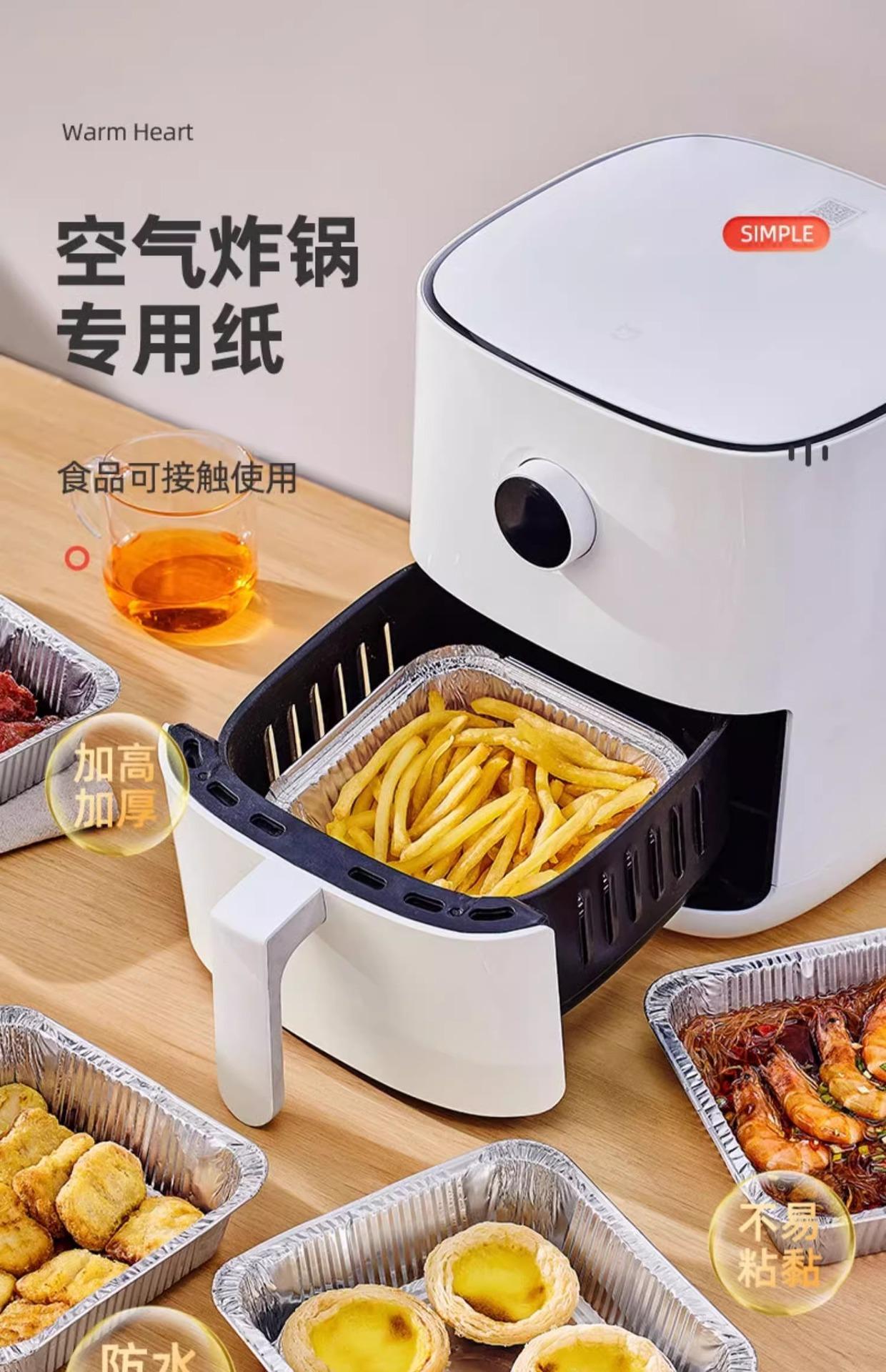 Bandeja especial de papel de hojalata para freidora de aire, cuadrada, desechable, para horno doméstico, de aluminio, para hornear, con recipiente de papel de hojalata grueso.