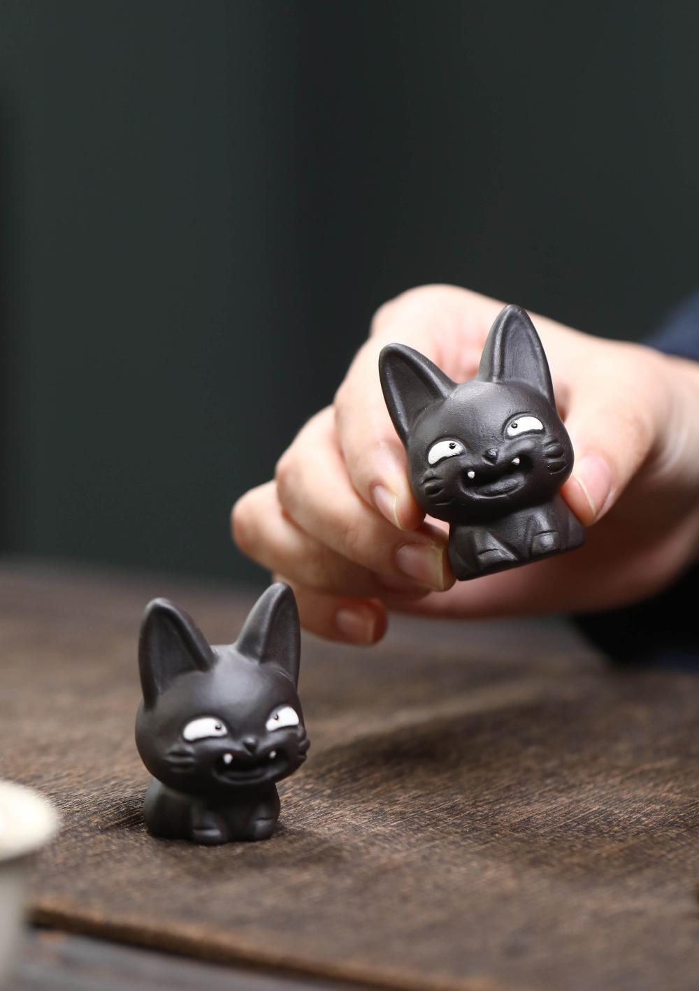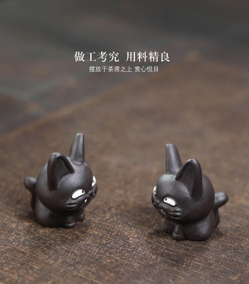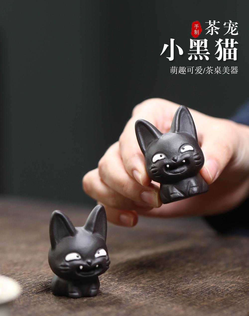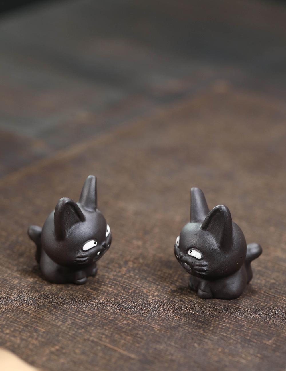 Adornos de gato negro para mascotas de té Yixing Zisha, escultura de gato curativa hecha a mano, artesanías, mesa de té, juego de té Kung Fu