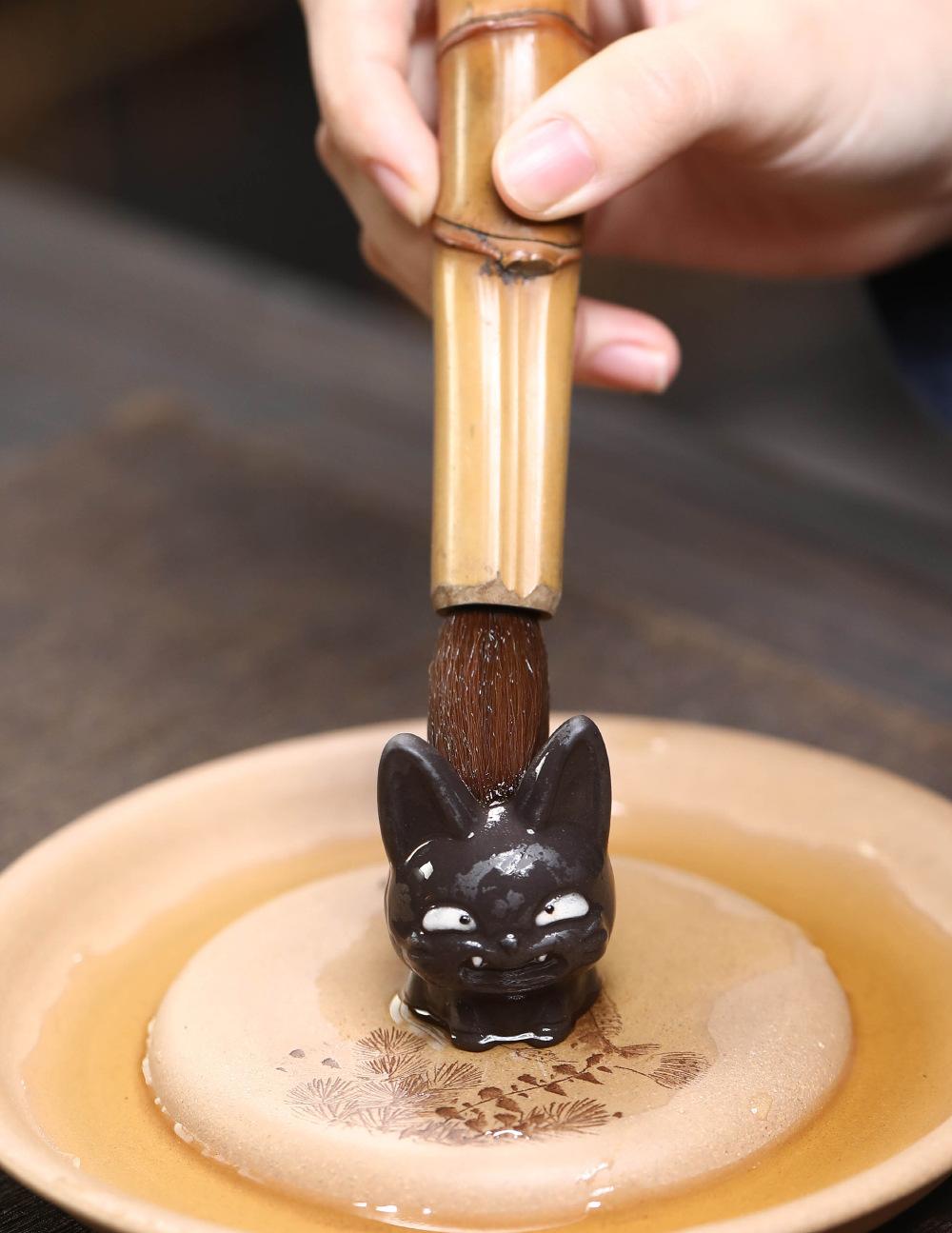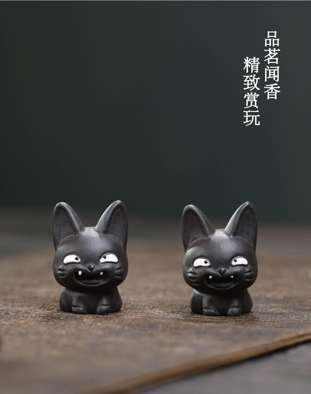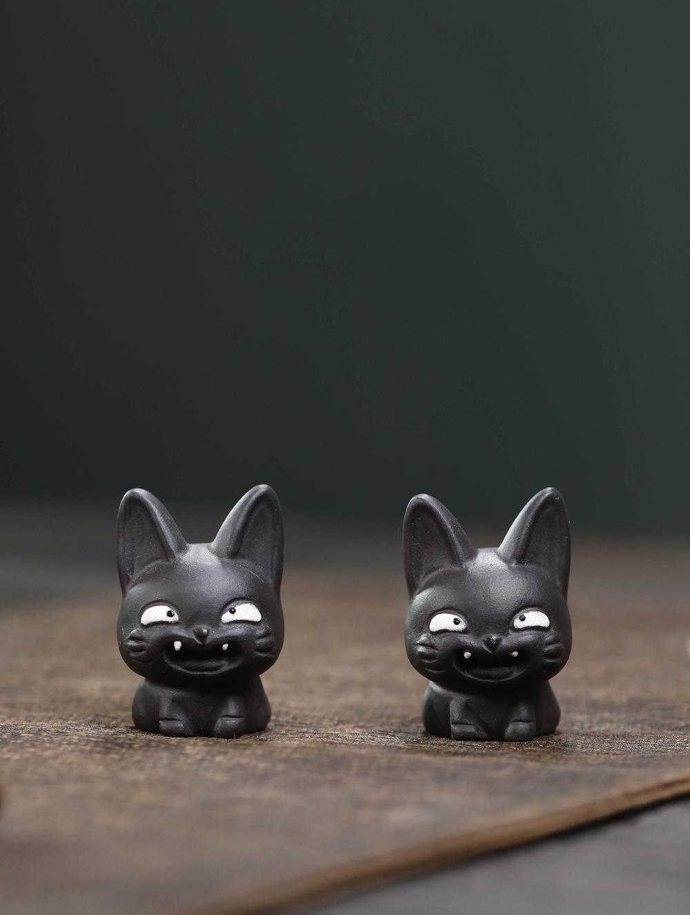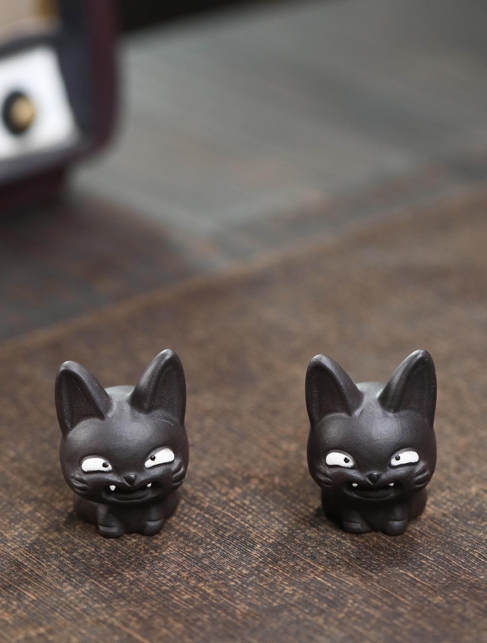 Adornos de gato negro para mascotas de té Yixing Zisha, escultura de gato curativa hecha a mano, artesanías, mesa de té, juego de té Kung Fu