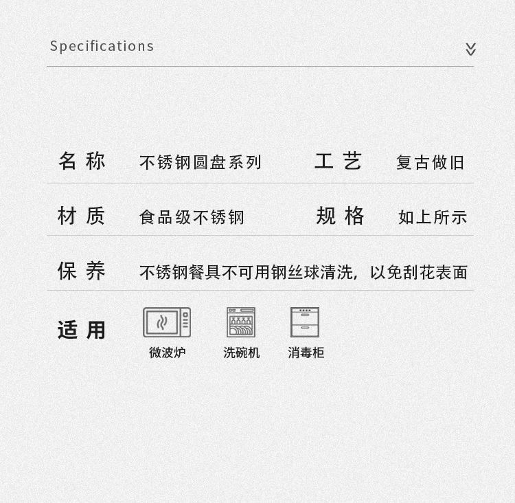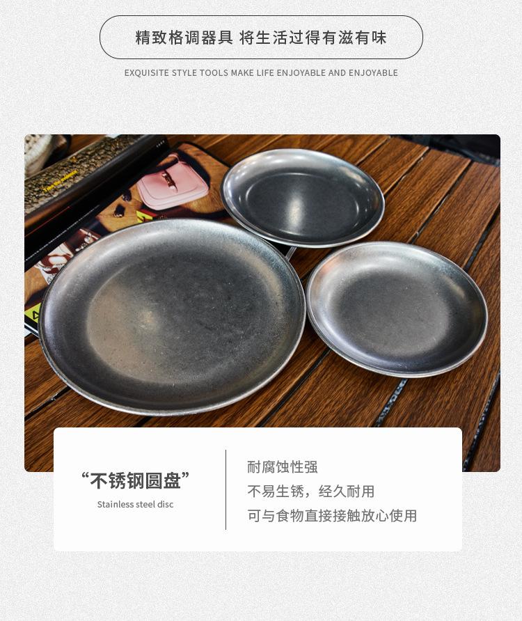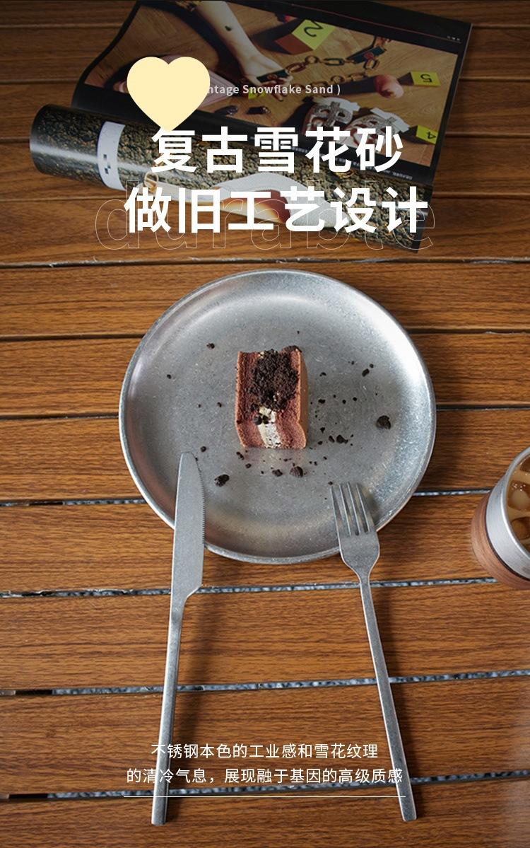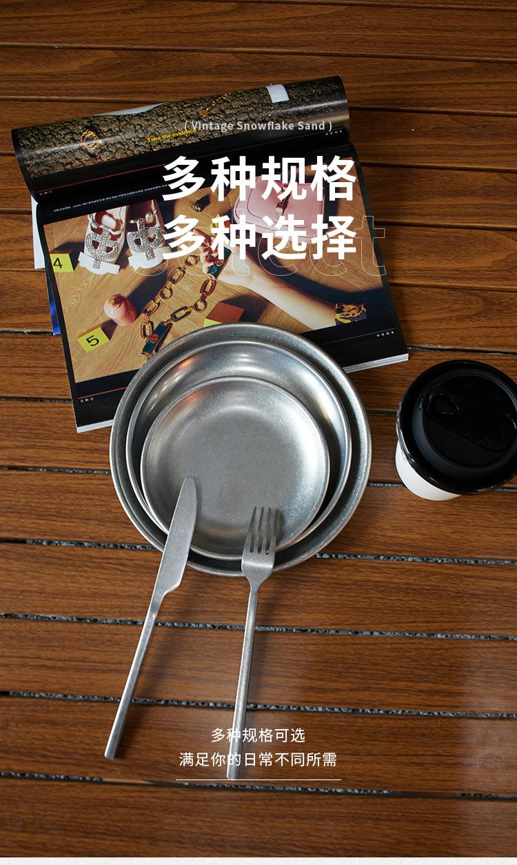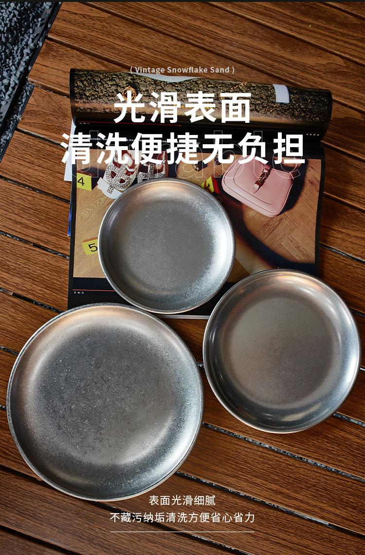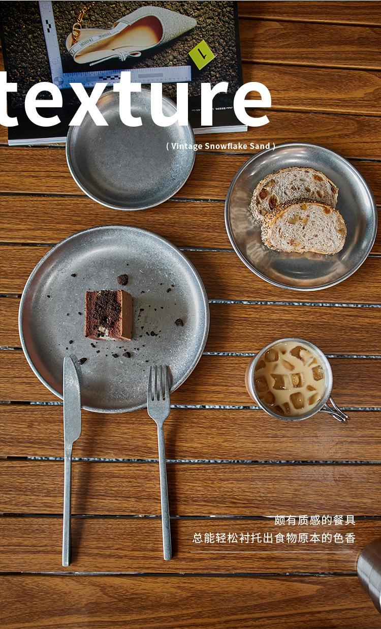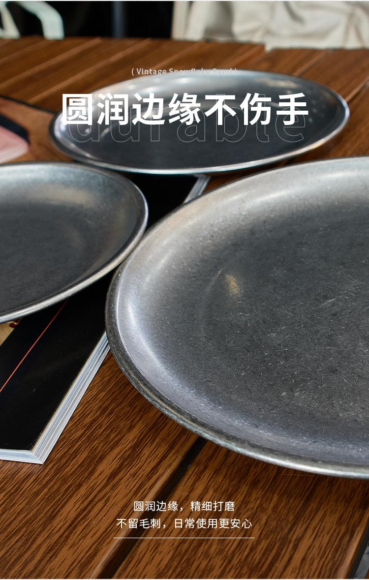 Plato de cena de acero inoxidable vintage, vajilla, juego de vajilla con logotipo personalizado comercial, bandeja de cafetería, plato para pastel
