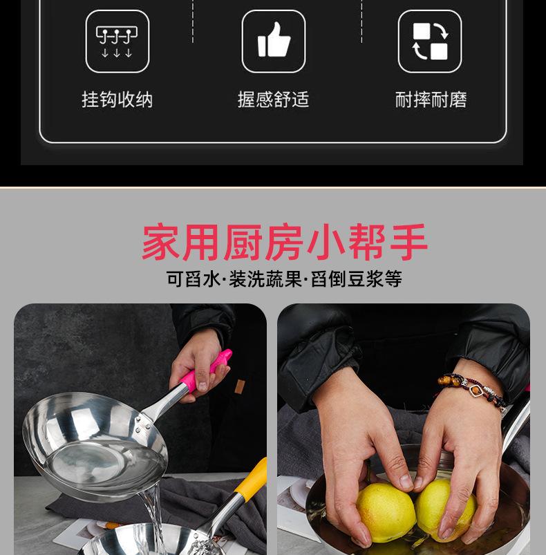 Cuchara de agua de acero inoxidable, cucharón de agua de cocina con gancho, cucharón grande para sopa, cuchara para gachas, cuchara de agua comercial con mango largo