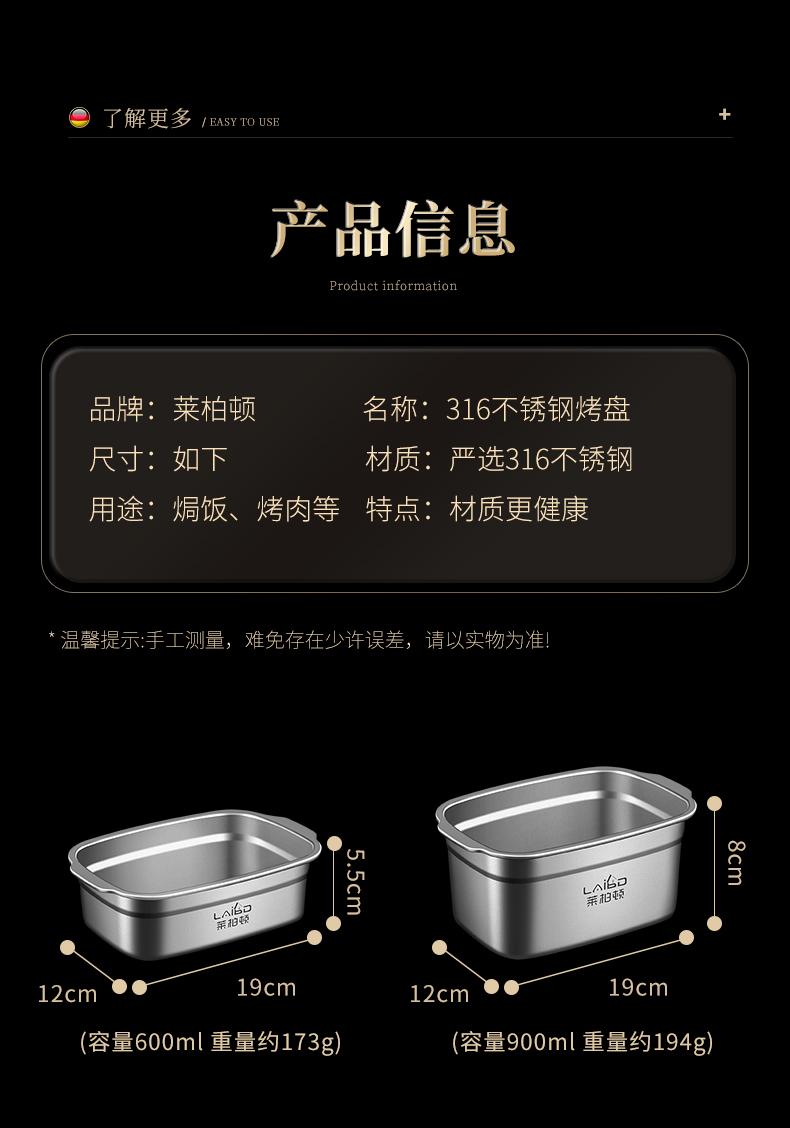 Regular 600ml baking pan, 316 stainless steel, Regular 800ml baking pan, 316 stainless steel, Heightened 900ml...