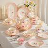 Vajilla y Juego de Platos de Color Bajo Cubierta Hogar Cuencos de Cerámica y Palillos Plato Creativo Lindo Dibujo Animado Conejo Mudándose a Nuevo Hogar Plato de Comedor