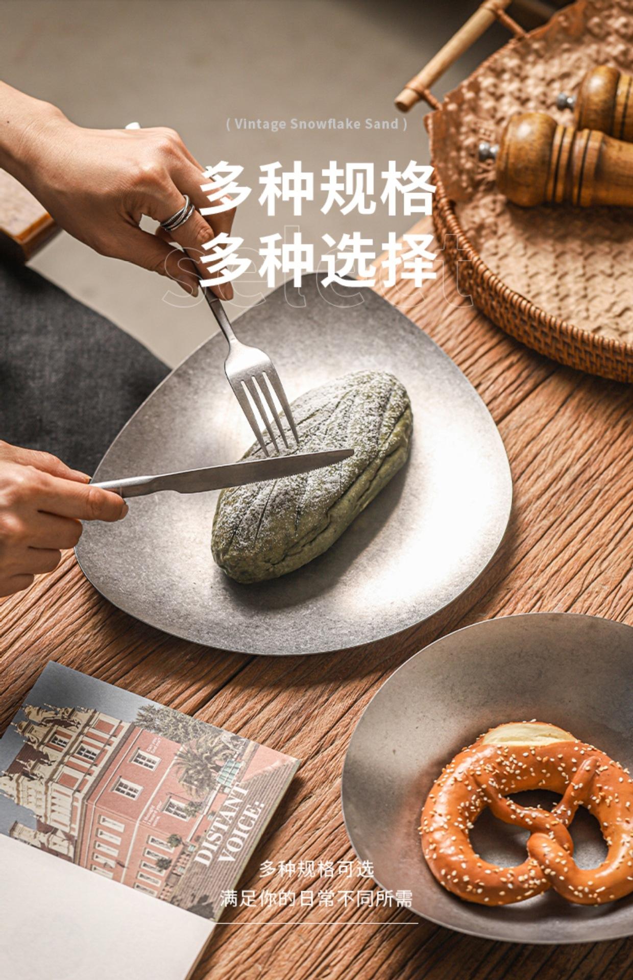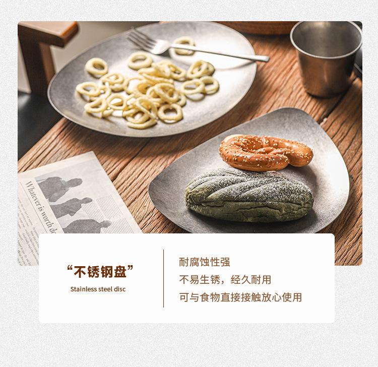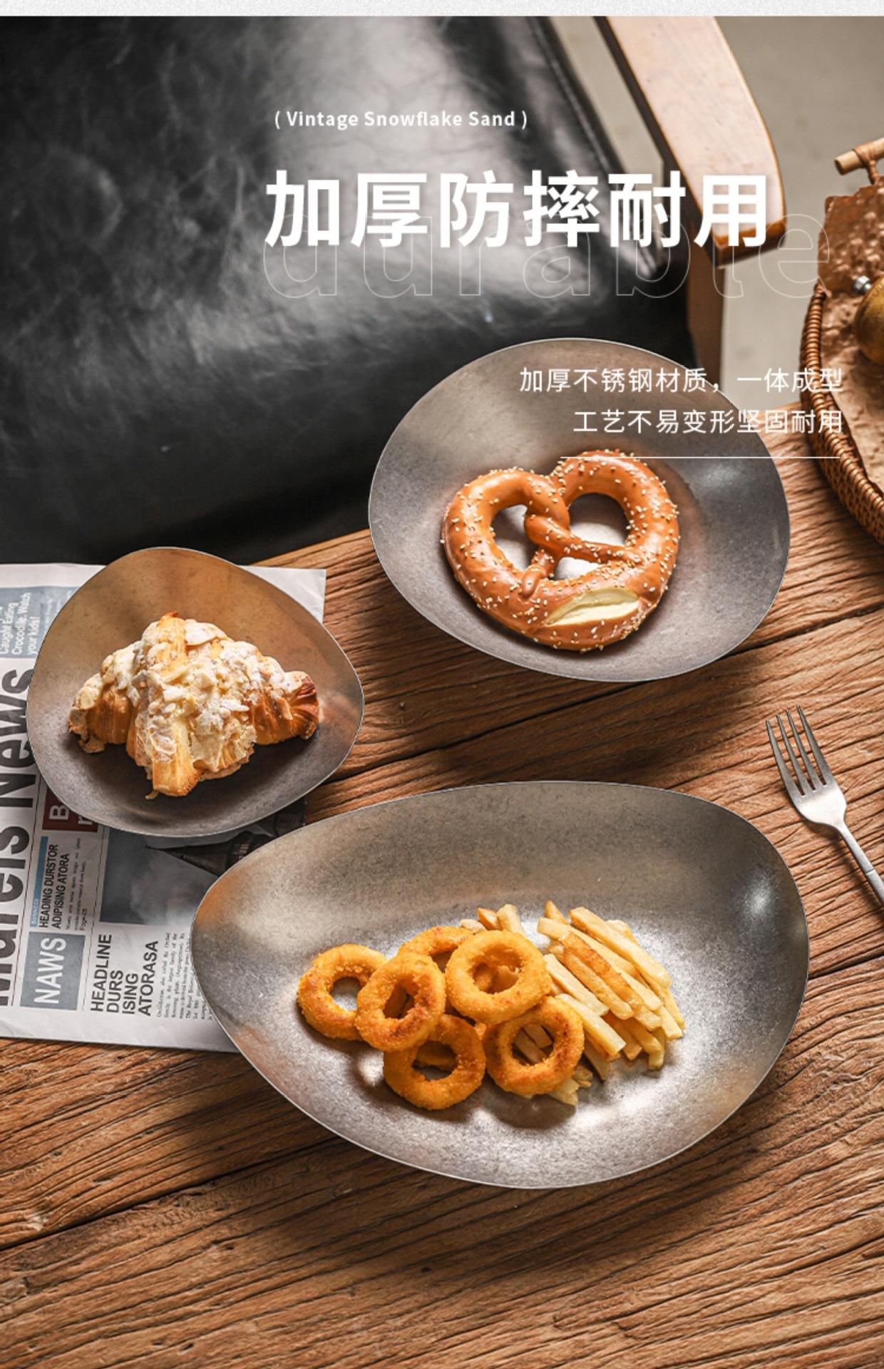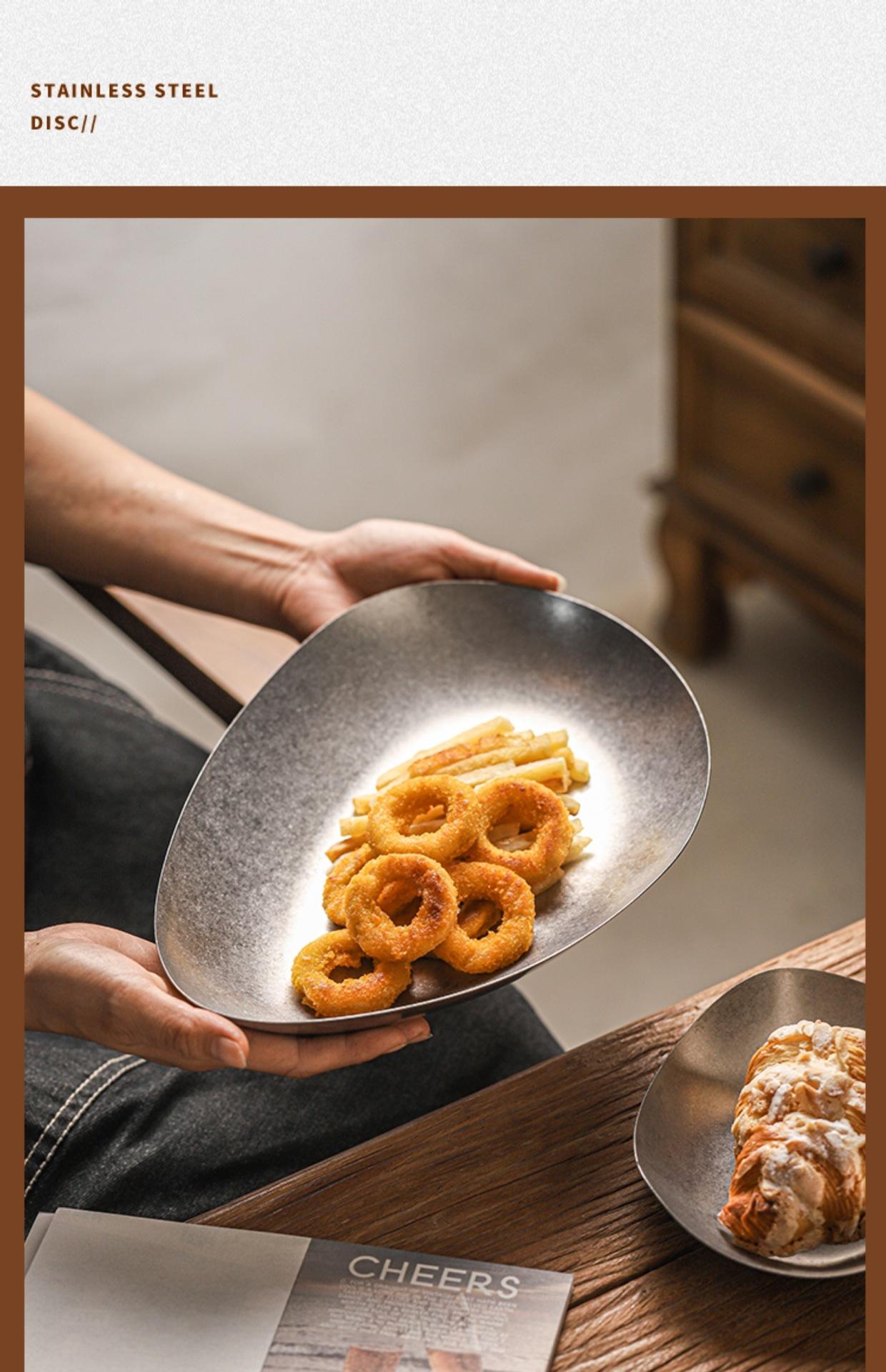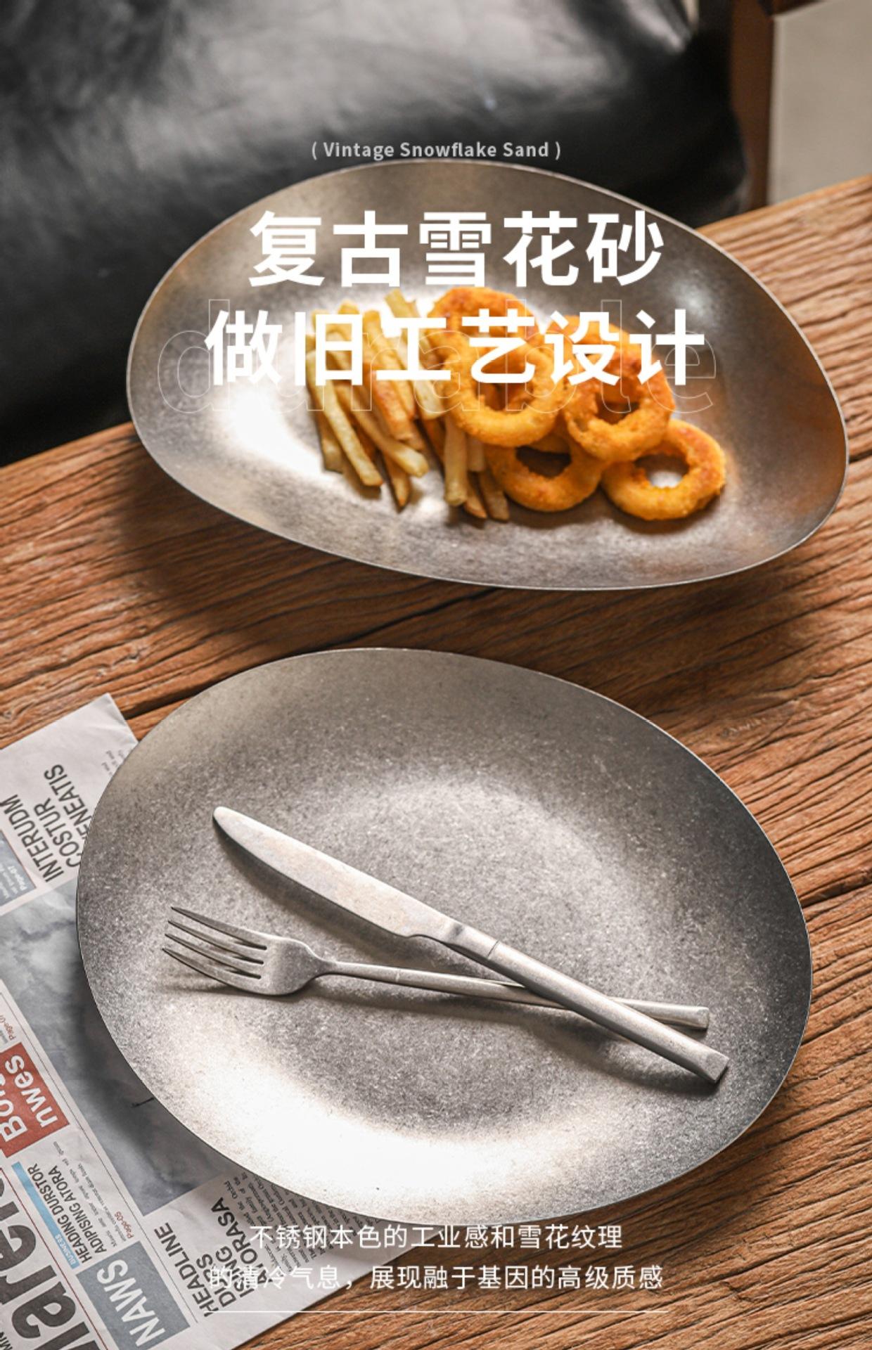 Plato de cena creativo vintage de acero inoxidable, plato irregular, vajilla de restaurante, plato con forma comercial, personalización