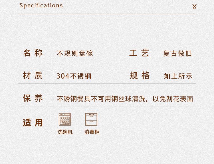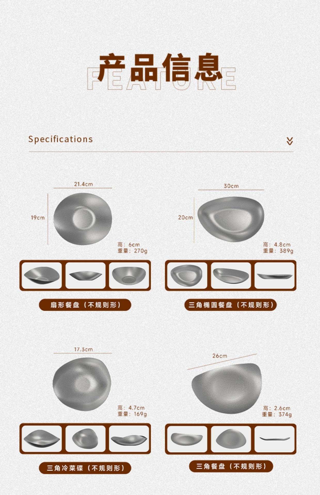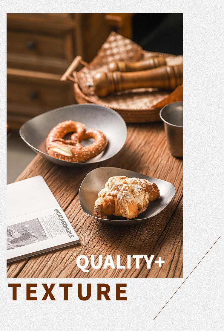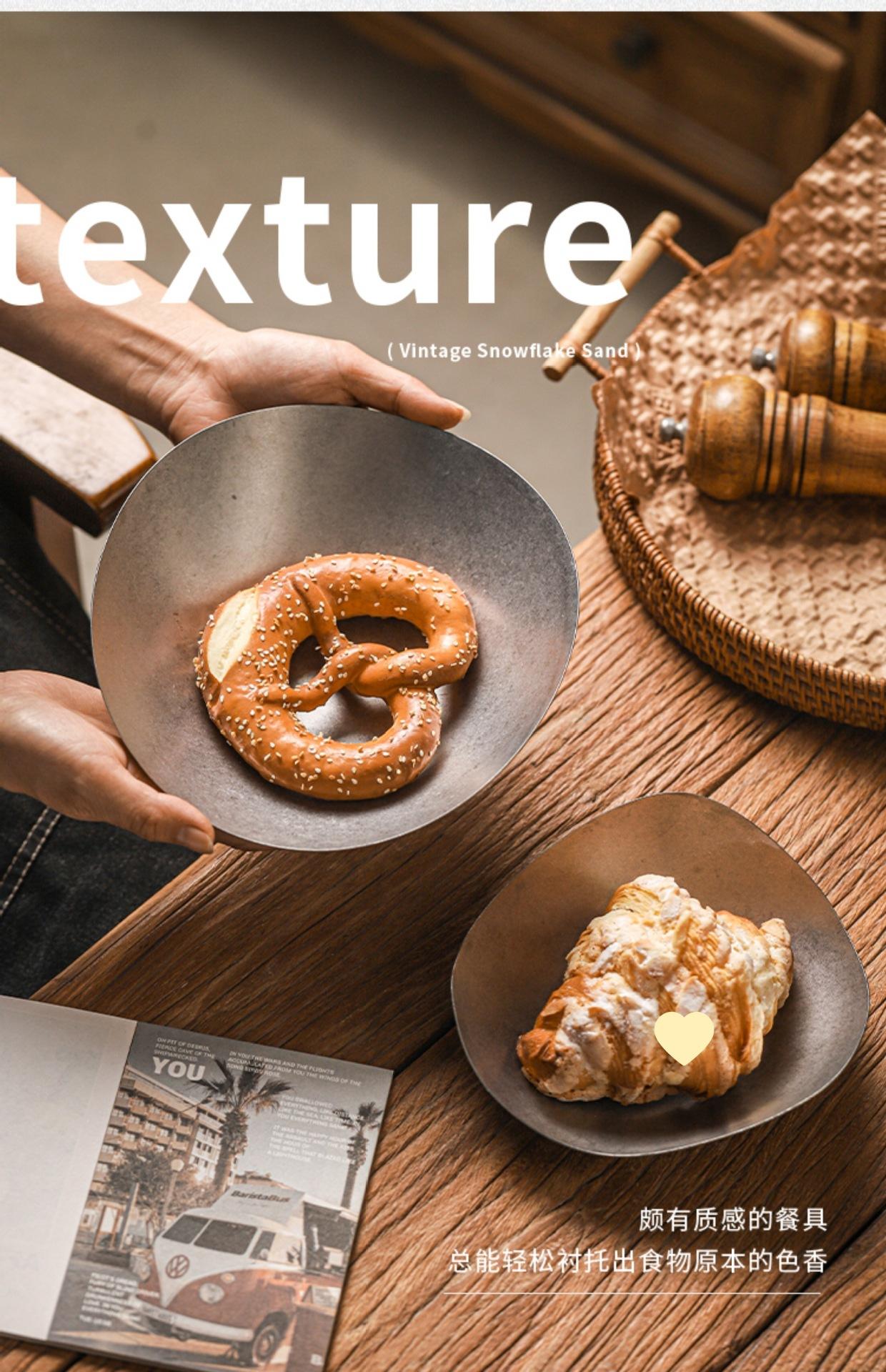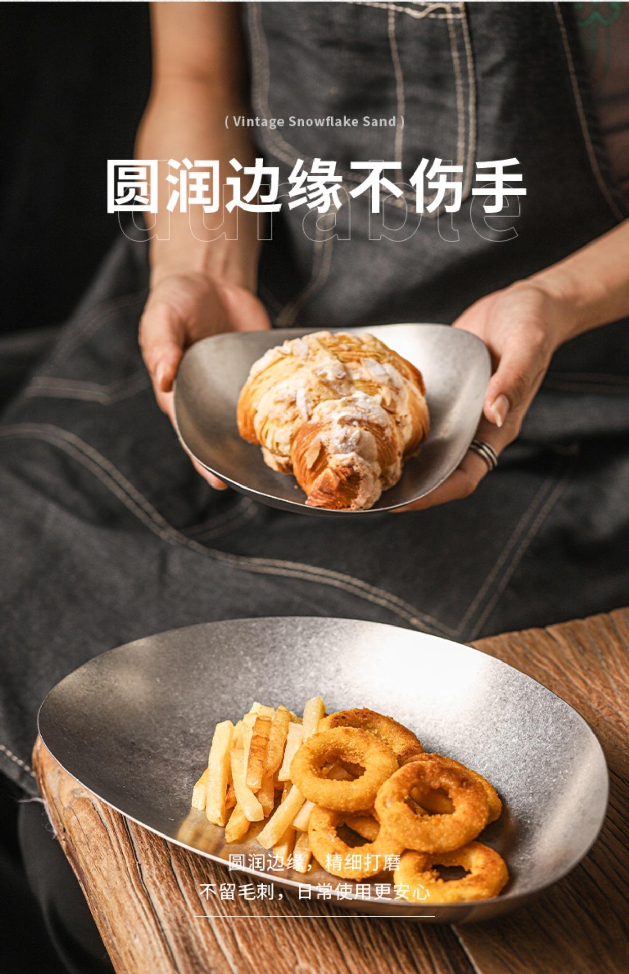Plato de cena creativo vintage de acero inoxidable, plato irregular, vajilla de restaurante, plato con forma comercial, personalización