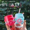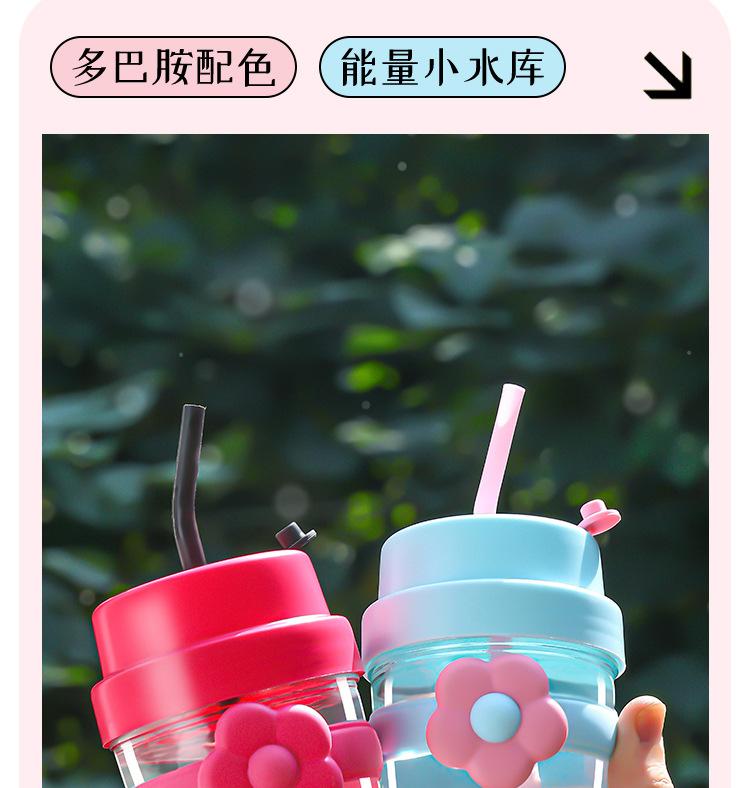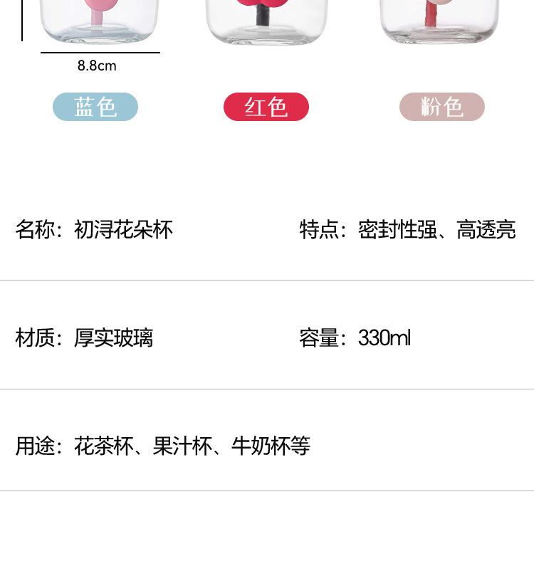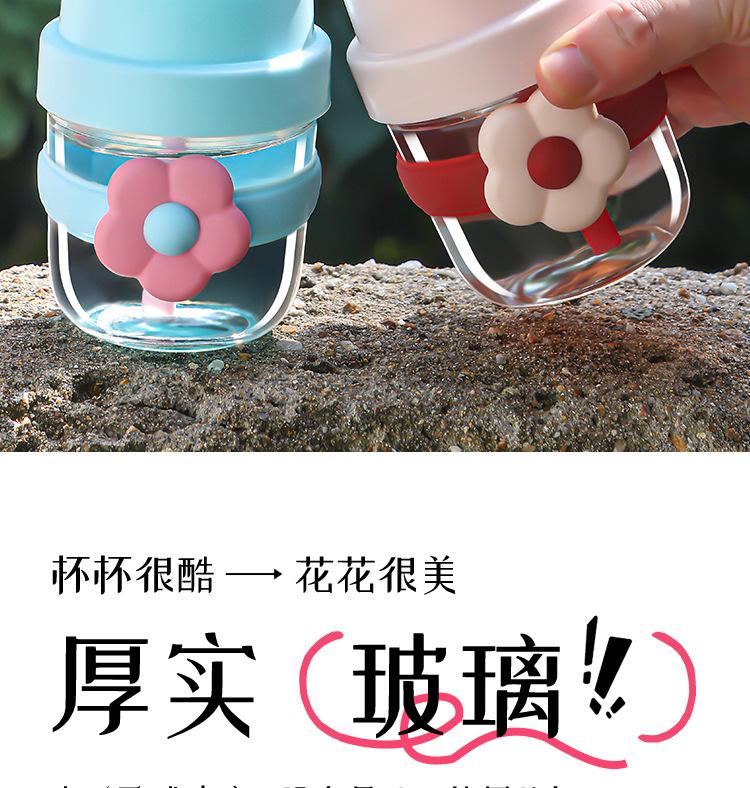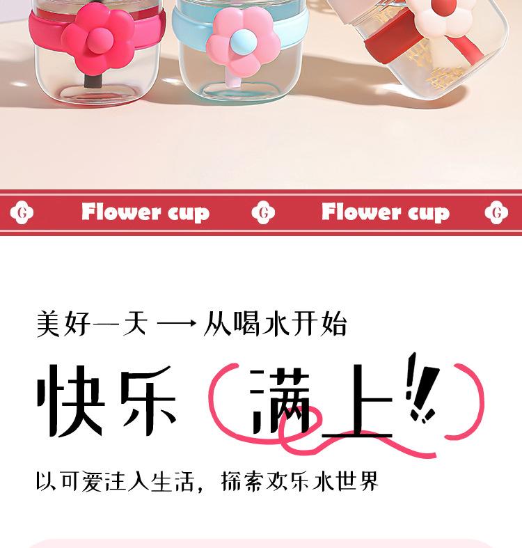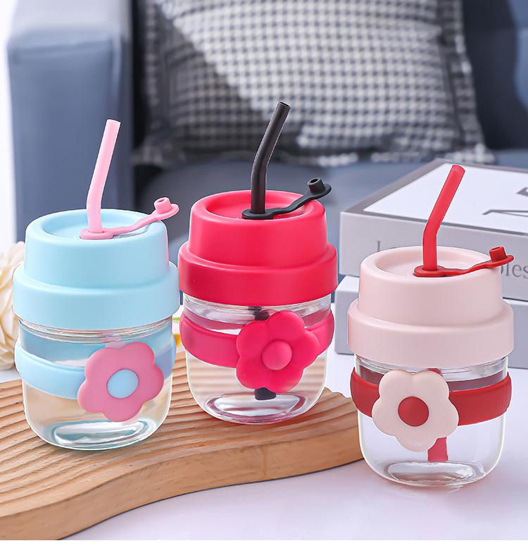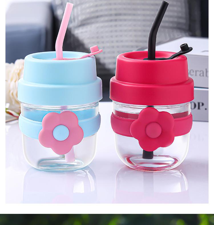 Vaso de Vidrio con Popote de Flor Vaso de Agua para Mujer Vaso Portátil Vaso para Café Colorido para Niños Estudiantes Vaso de Agua Bebida Jugo