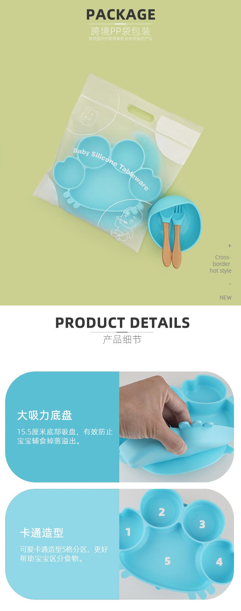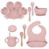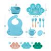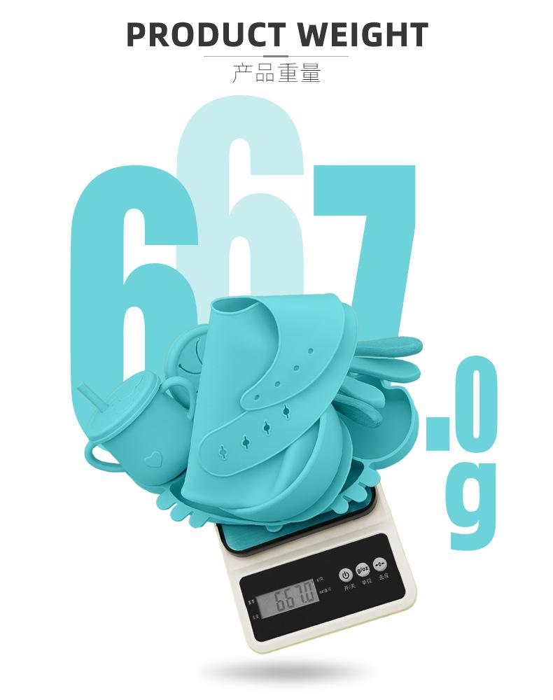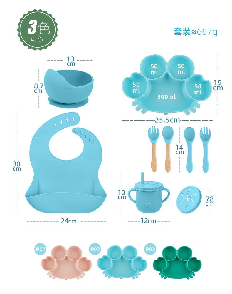 Traje de silicona para niños, plato de comida, segmentación infantil, traje de alimentación suplementaria, bolsa de comida, babero, taza, tazón, especial anticaída