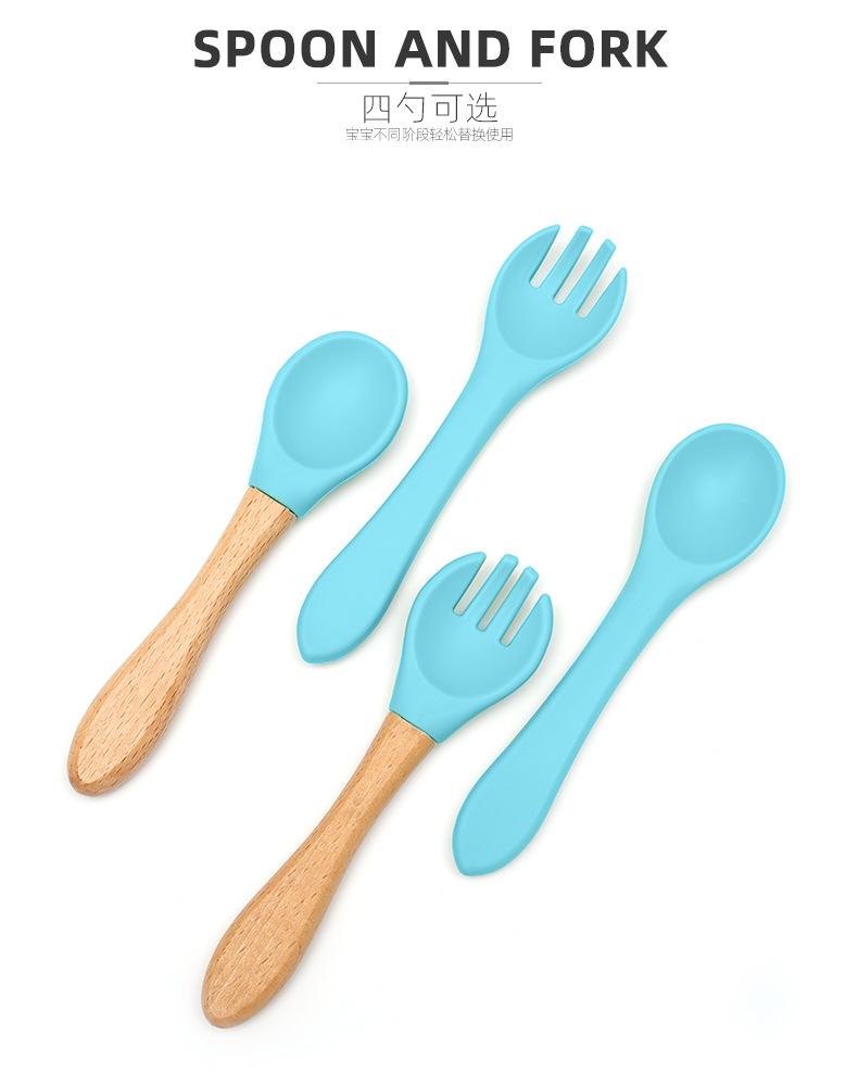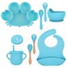 Crab blue dinner plate + silicone fork + spoon + bowl + rice bag + cup + two cup lids + wooden fork and spoon 10-piece set