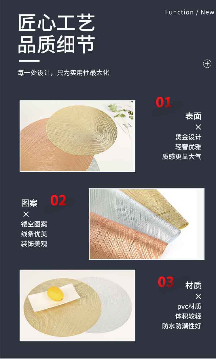 Compra Estilo Lujo Ligero Estilo Europeo Asimétrico Estampado en Caliente Aislamiento Manteles Individuales Redondos Pvc Mantel Individual Aislamiento Anti-Escaldaduras Comida Occidental Listo para Enviar al por mayor en Joom.pro