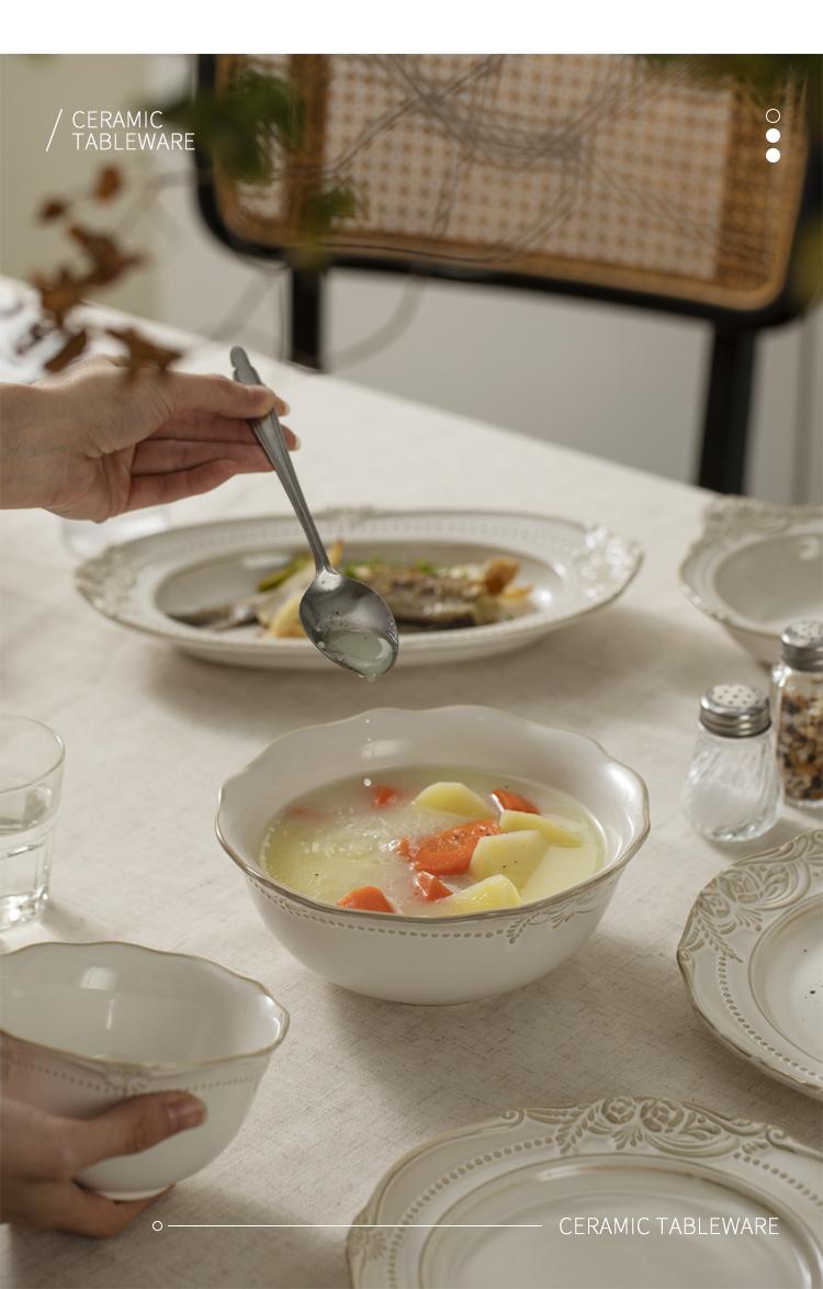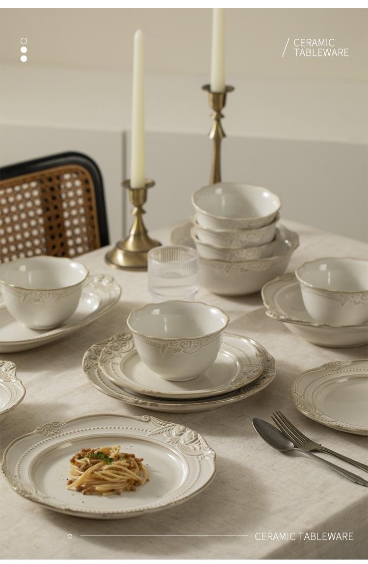 Cuenco de arroz estilo francés, plato para sopa, cuenco de doble oreja, plato de cerámica para el hogar, vajilla individual, caja de regalo