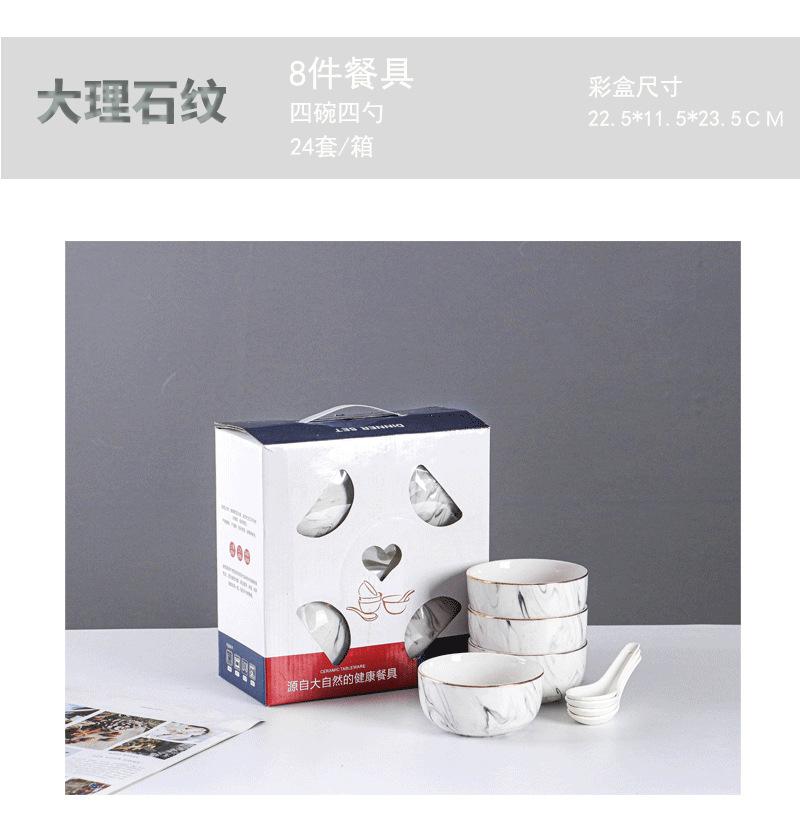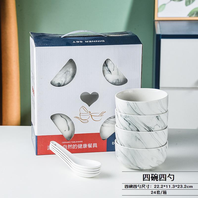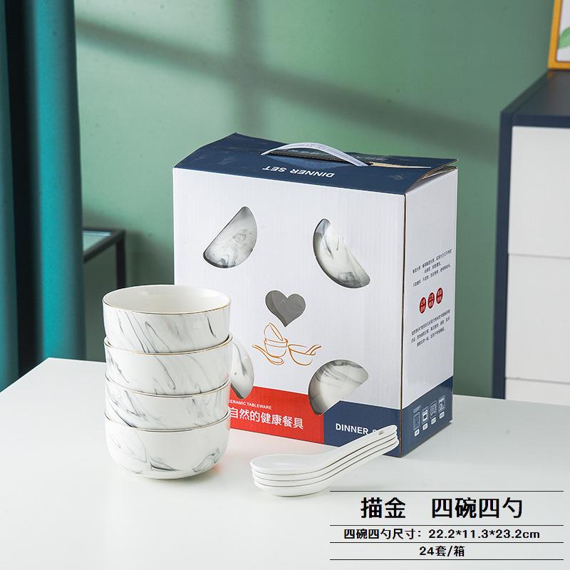Tamaño de la caja de color de cuatro tazones y cuatro cucharas: 22.5*11.5*23.5CM 24 juegos/caja