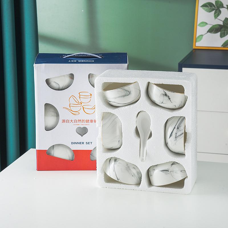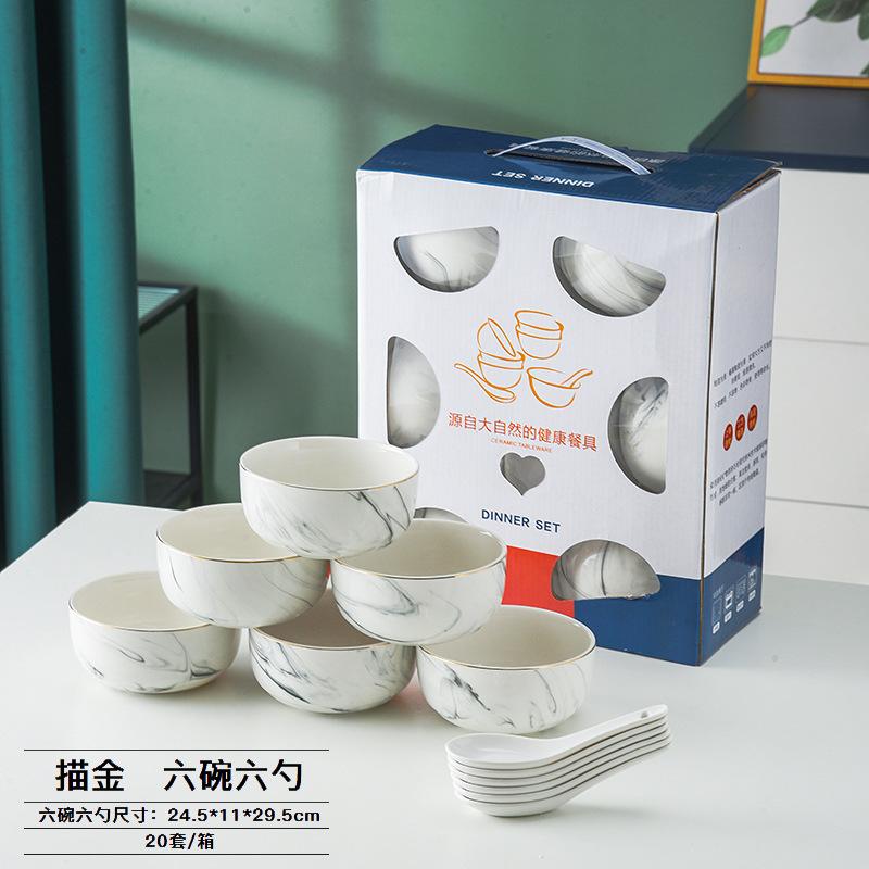 Seis tazones y seis cucharas tamaño caja de color: 24.2*11.5*29.5CM 20 juegos/caja