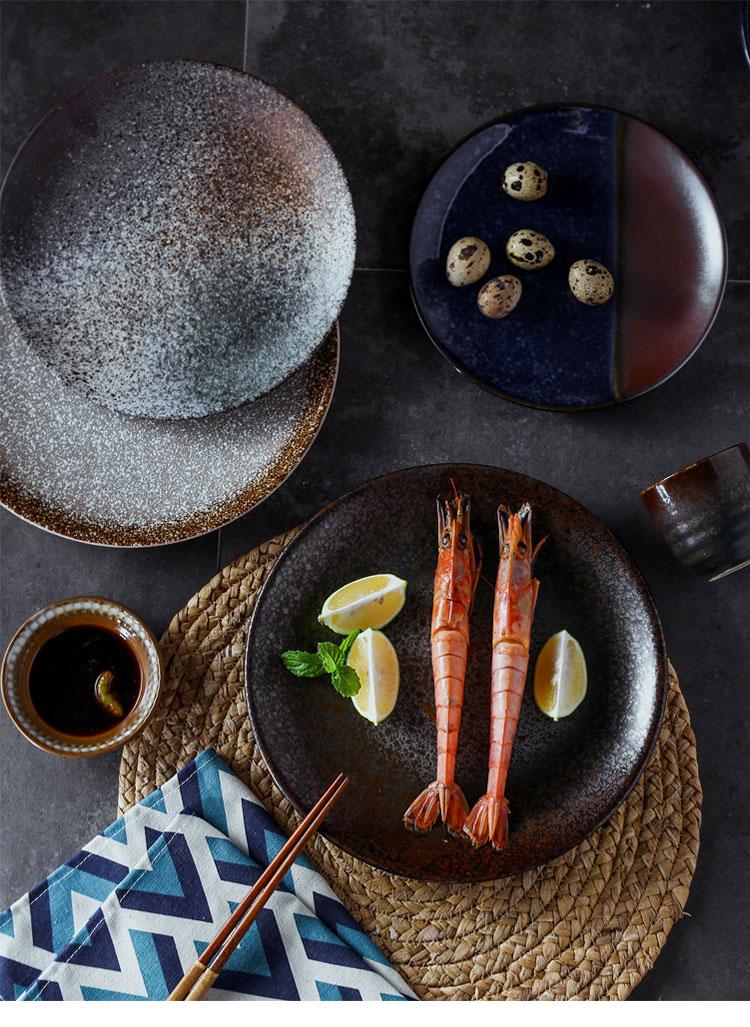 Plato Japonés Vintage Plato de Cerámica Plato Creativo para Cena Vajilla Comercial Plato para Cena Doméstico Plato Plano Plato Plato y Estilo