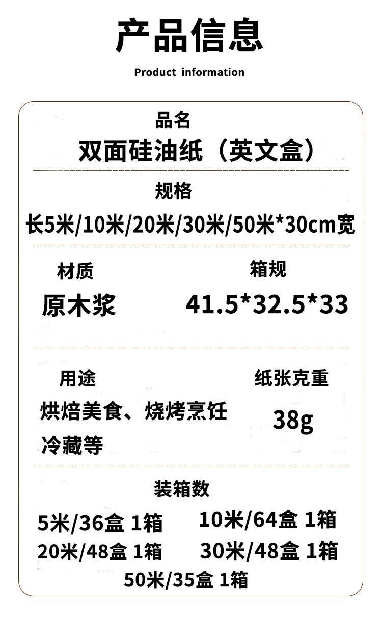 5m silicone paper*width 30cm, 10m silicone paper*width 30cm, 20m silicone paper*width 30cm, 30m silicone paper...