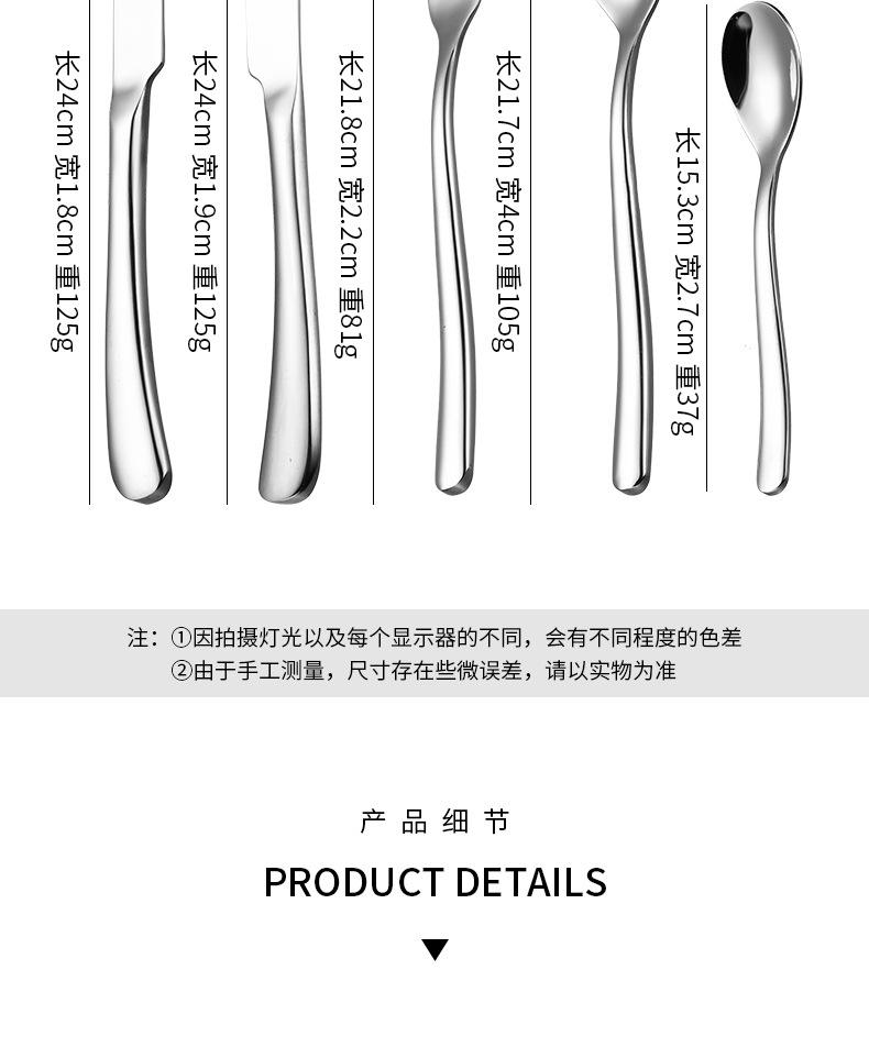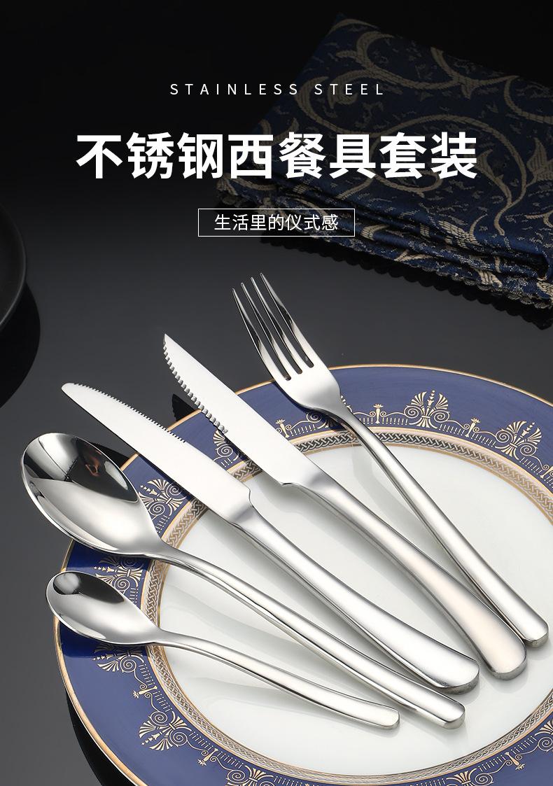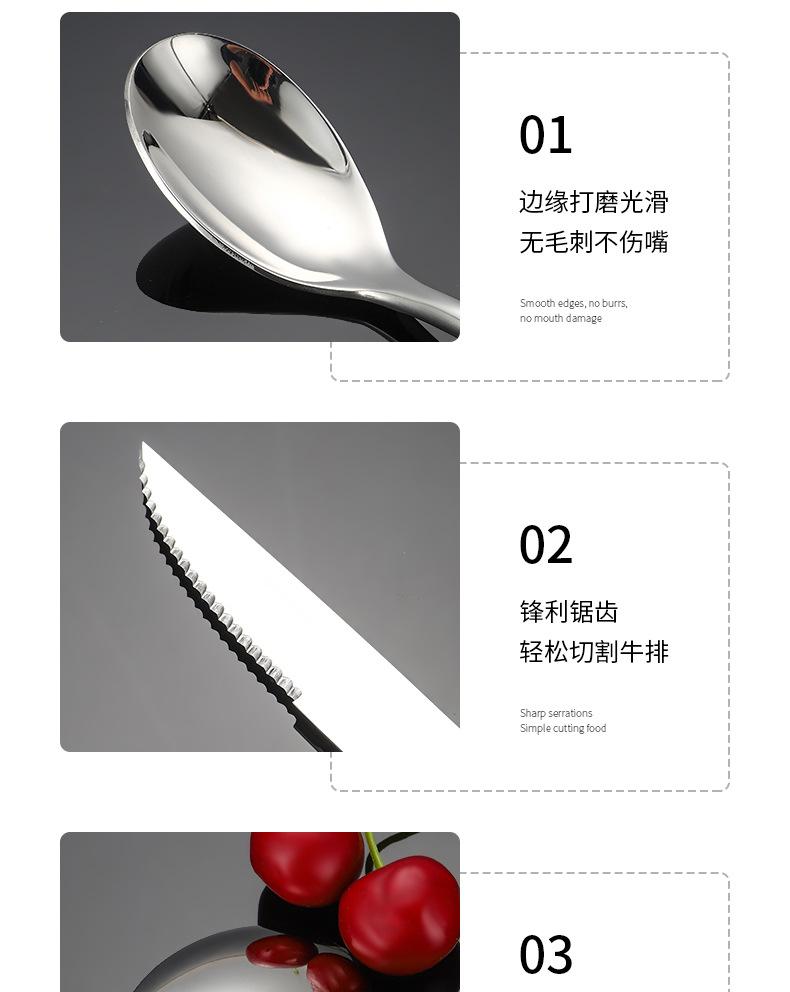 410 steak knife, 410 table knife, 304 table fork, 304 table spoon, 304 teaspoons
