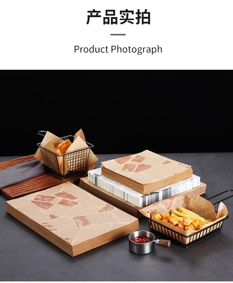 Papel a prueba de aceite Papel absorbente de aceite para alimentos Papel para barbacoa Papel a prueba de aceite Papel para papas fritas Papel para pan de hamburguesa Papel para bandeja de horno