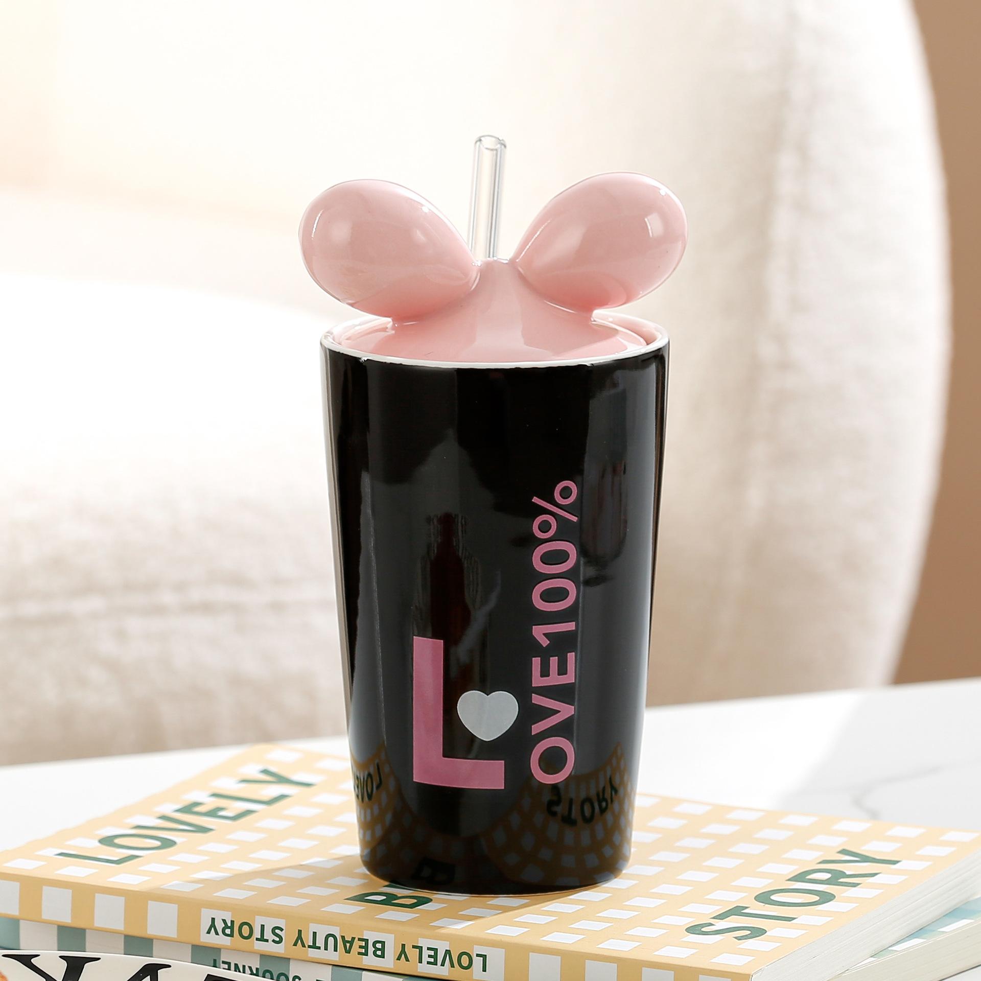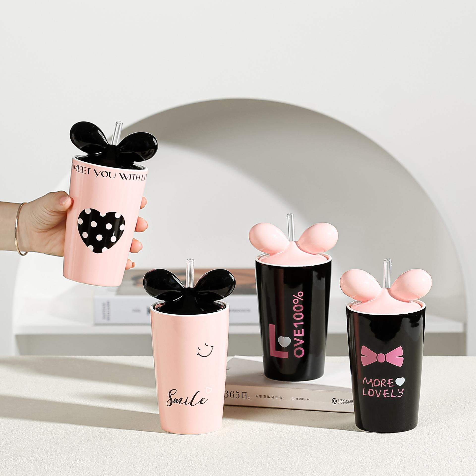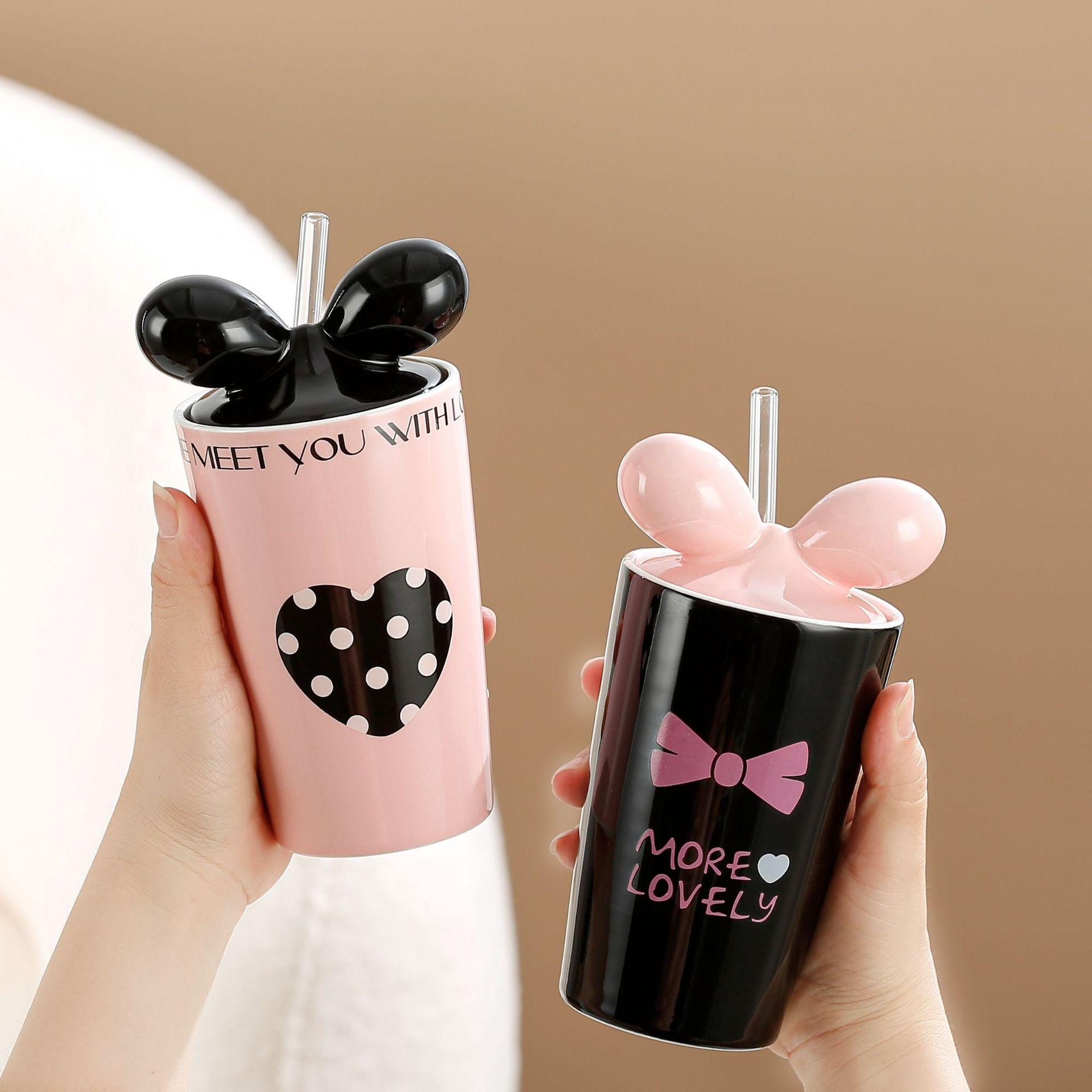 Taza con Tapa y Cuchara 2023 Nueva Taza de Agua de Cerámica para Parejas Pajita para Recargar Taza de Café para Oficina Taza de Agua de Celebridad de Internet