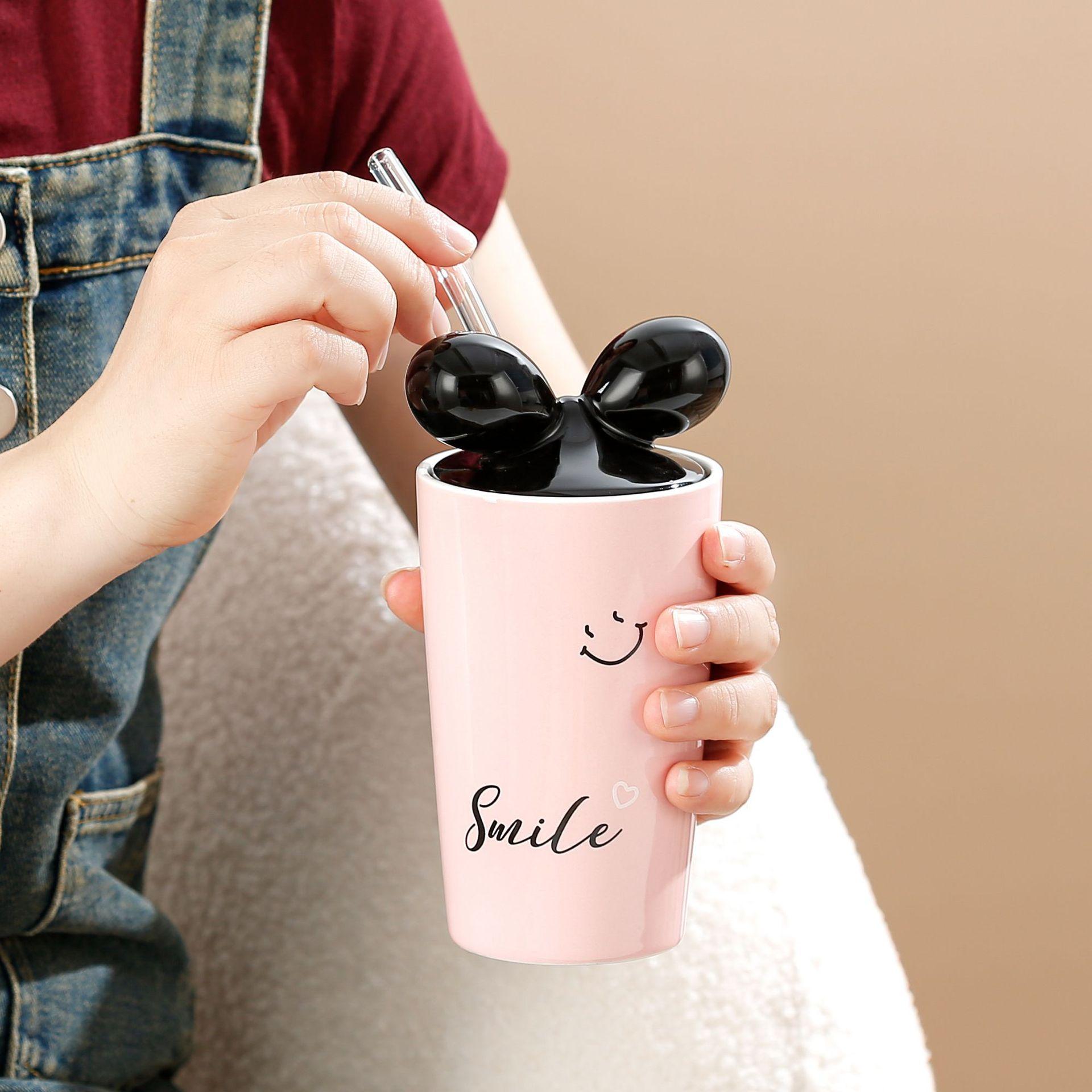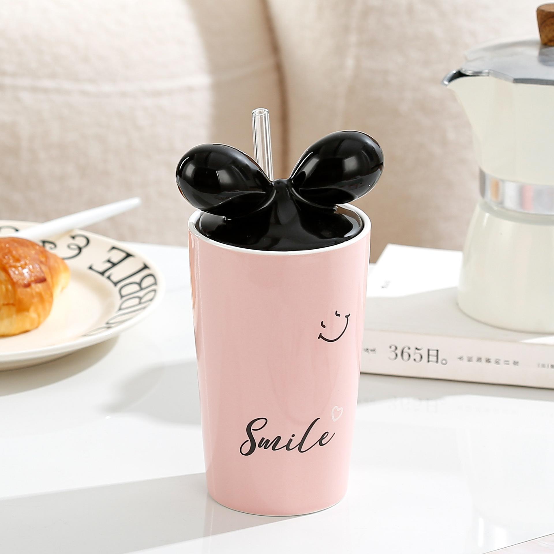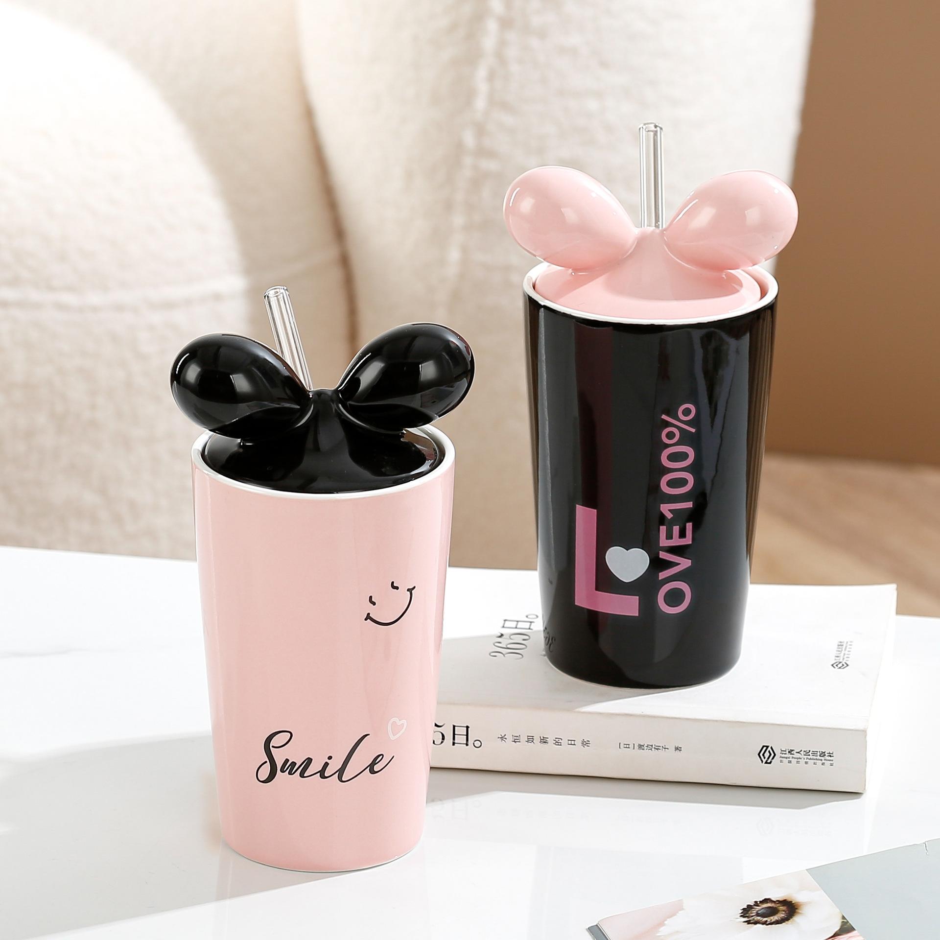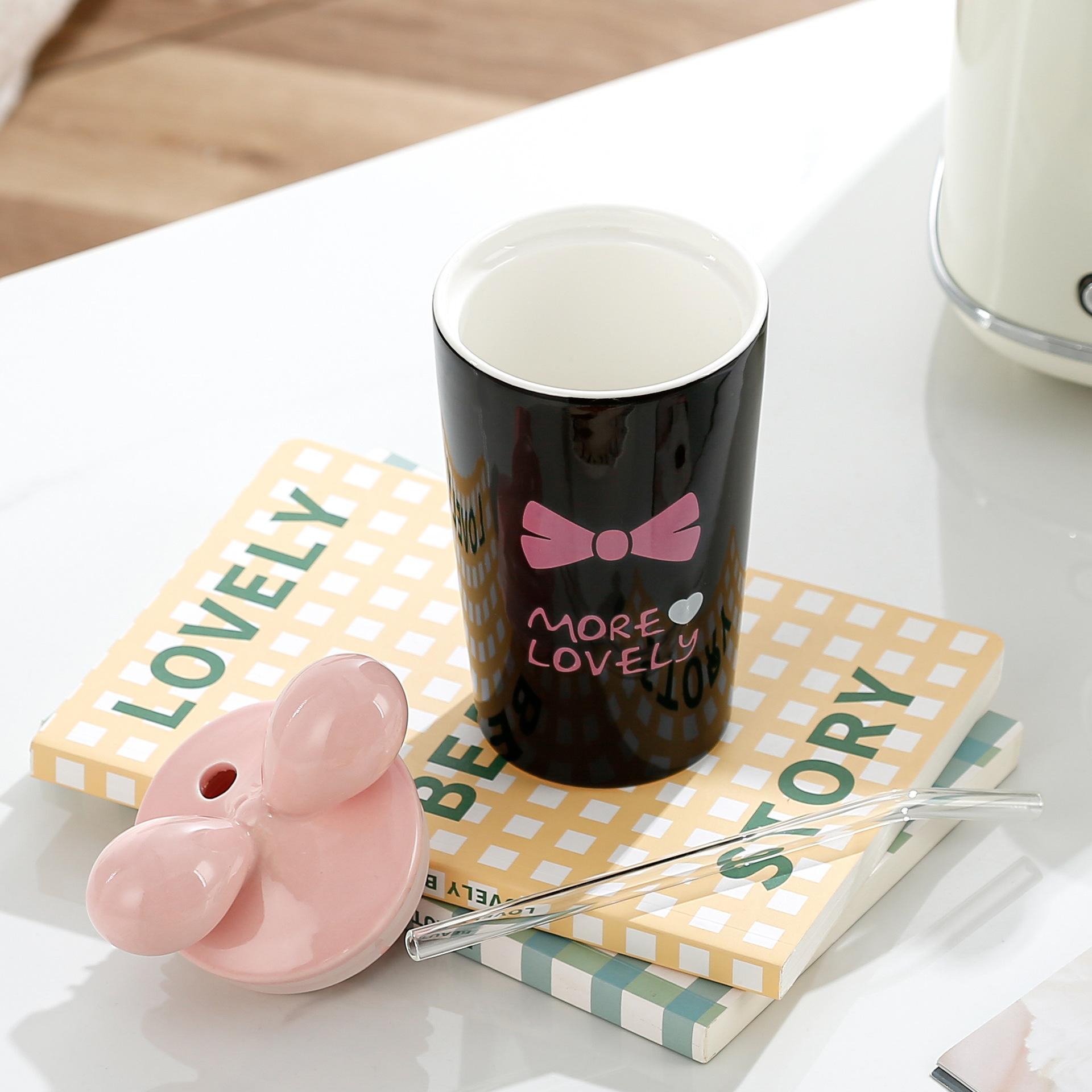 Taza con Tapa y Cuchara 2023 Nueva Taza de Agua de Cerámica para Parejas Pajita para Recargar Taza de Café para Oficina Taza de Agua de Celebridad de Internet