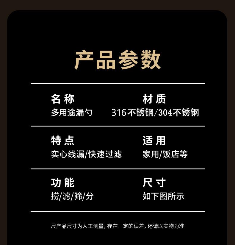 Colador Acero Inoxidable 316 Hogar Cocina Olla Caliente Especial Cuchara para Dumplings Dumpling Tamiz Frito Comercial 304 Cuchara Colador de Valla