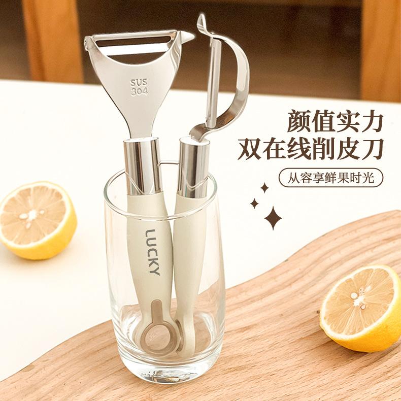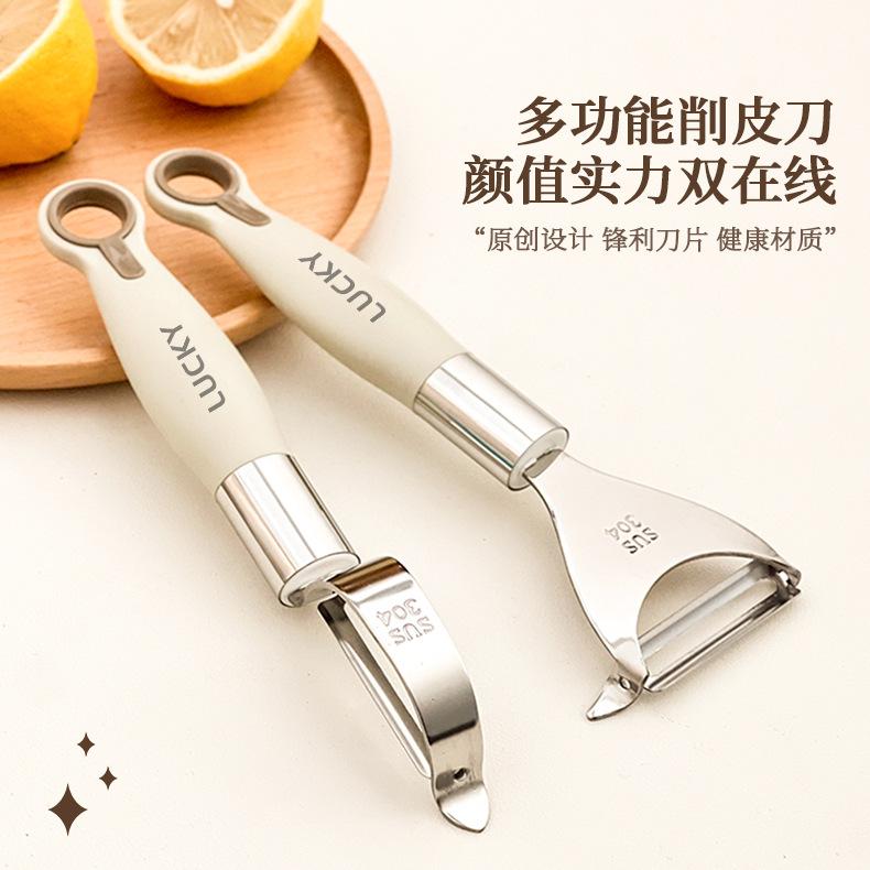Pelador de frutas doméstico dos en uno, pelador de manzanas, patatas, melones, dormitorio, artefacto afilado, logotipo