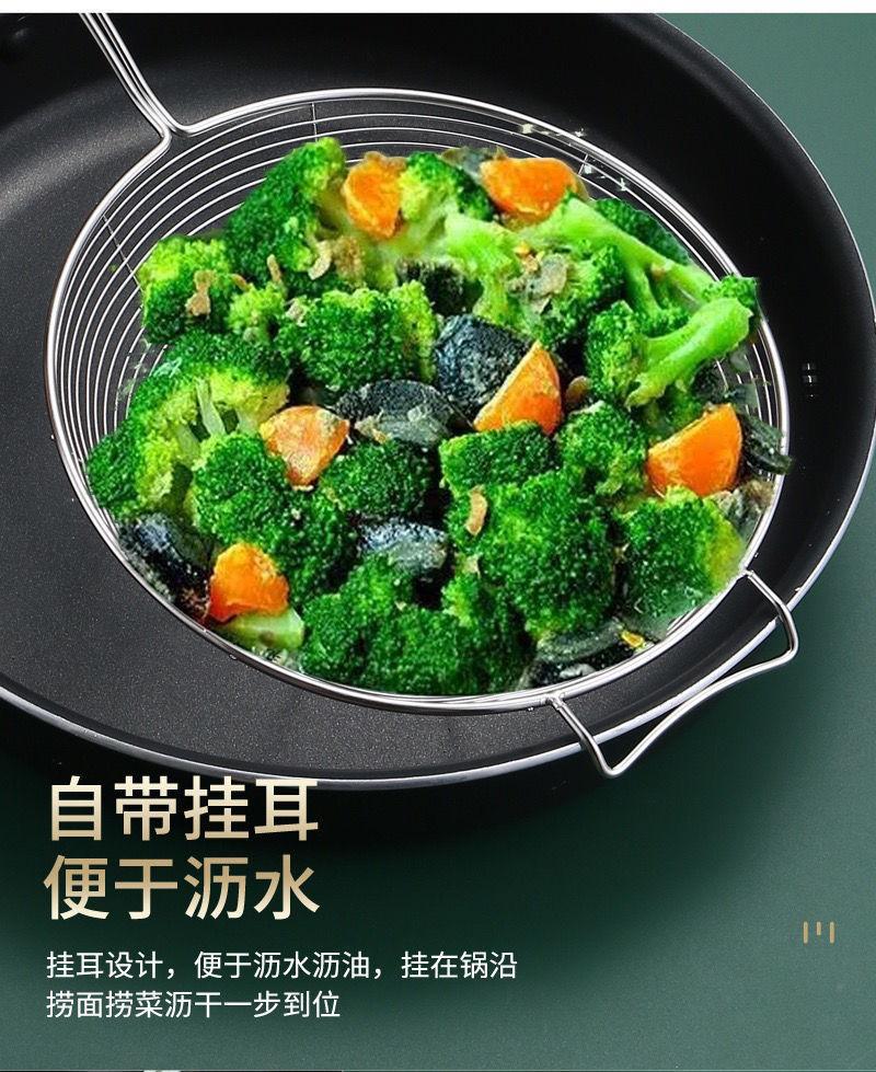 Colador de acero inoxidable para cocina doméstica, filtro para fideos fritos, olla caliente comercial, cuchara grande, mango de madera