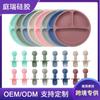 Vajilla de silicona de acero inoxidable 304 para niños, juego de 7 piezas con babero, tenedor, cuchara y mango de madera para alimentación de bebés.