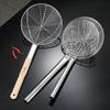 Colador de alambre de acero inoxidable con mango de madera antiguo, cuchara grande para olla caliente, filtro de cocina doméstico para fideos fritos y albóndigas.