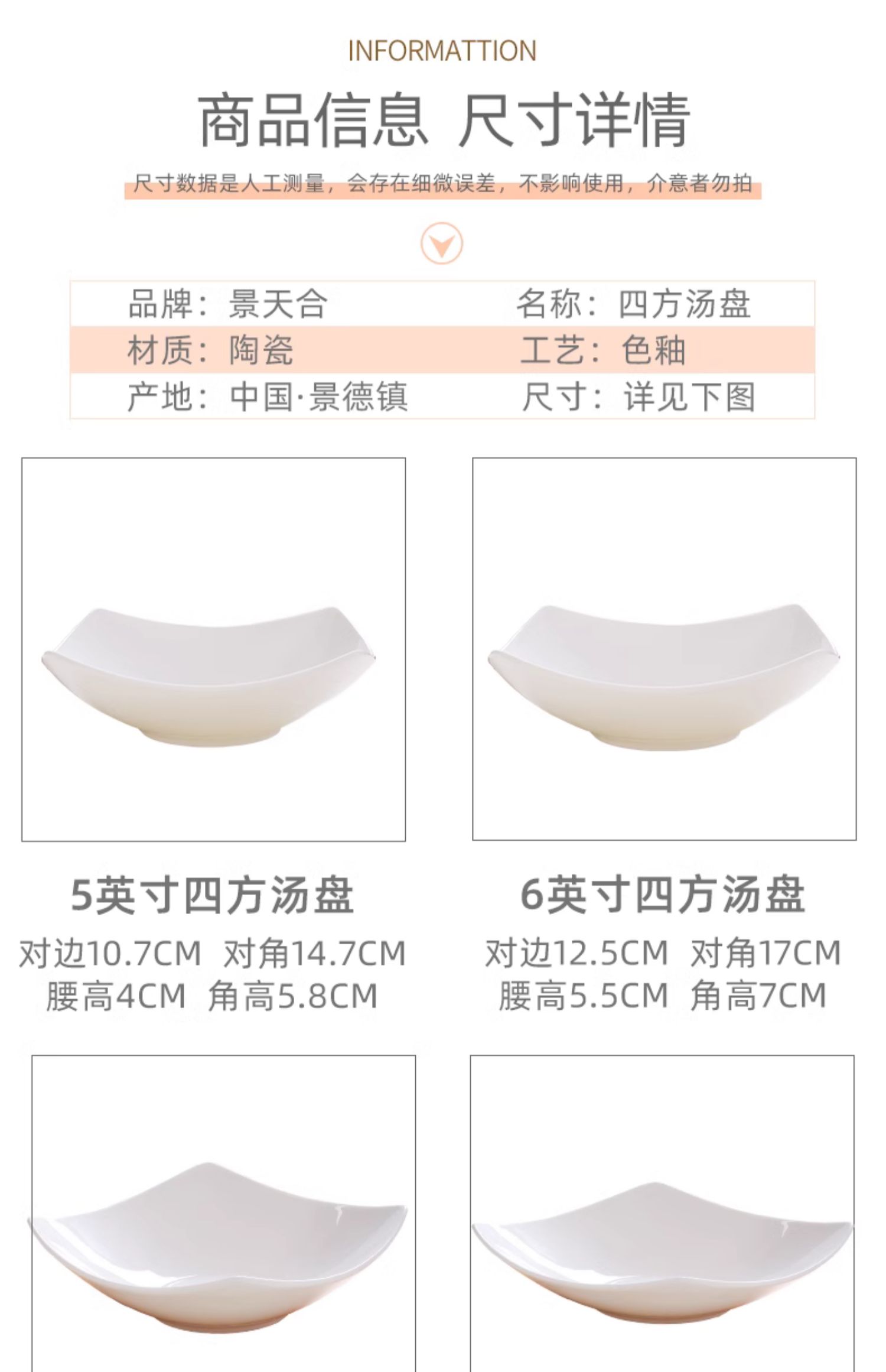 5inch square small plate (1 piece), 6inch square deep dish (1 piece), 7inch square soup plate (1 piece), 8inch...
