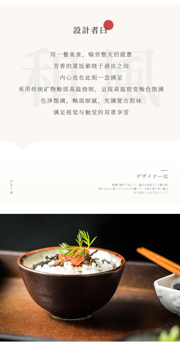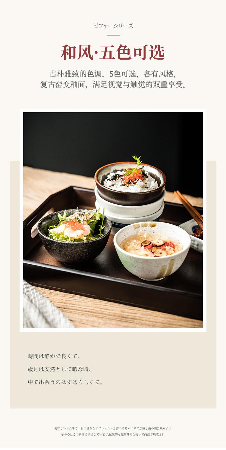 Cuenco de arroz de estilo japonés, vajilla de cerámica de alto valor de color para el hogar, cuenco individual para comer, cuenco de arroz retro creativo