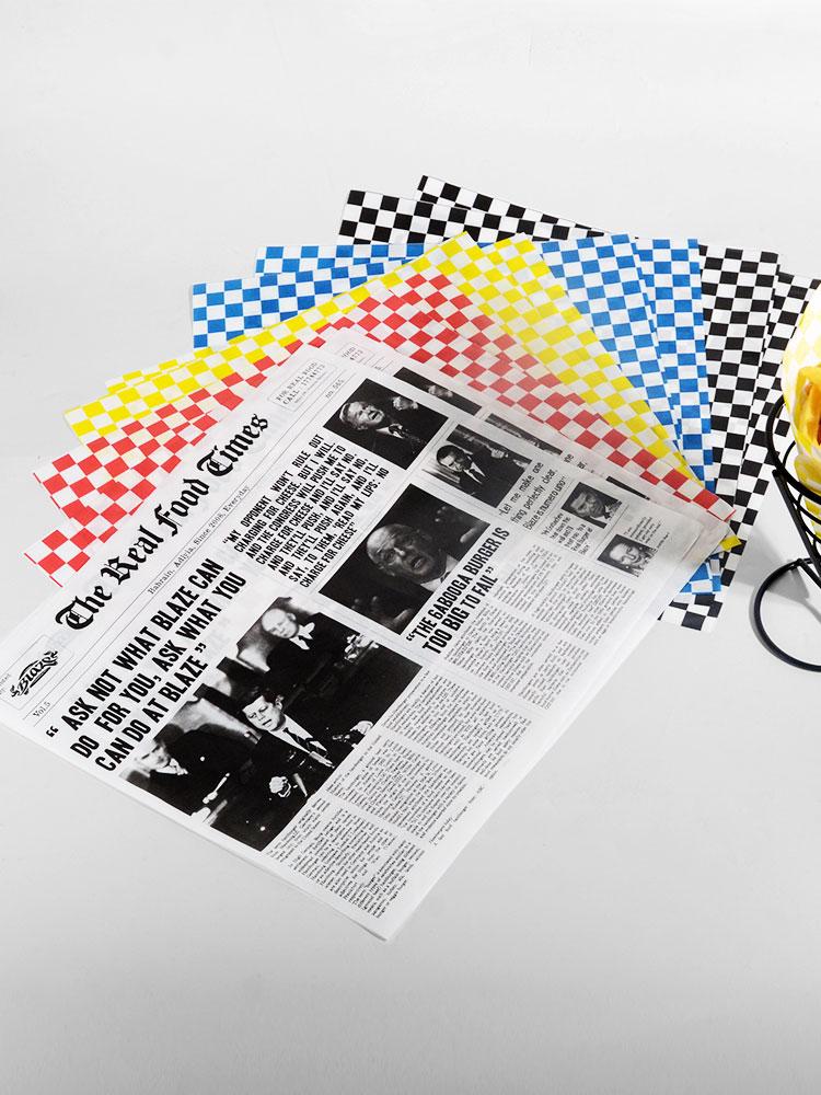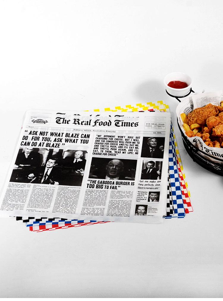 Papel de almohadilla a prueba de aceite Papel de silicona para alimentos Papel de periódico Papel absorbente de aceite Papas fritas Hamburguesa Periódico inglés Papel de bandeja de restaurante