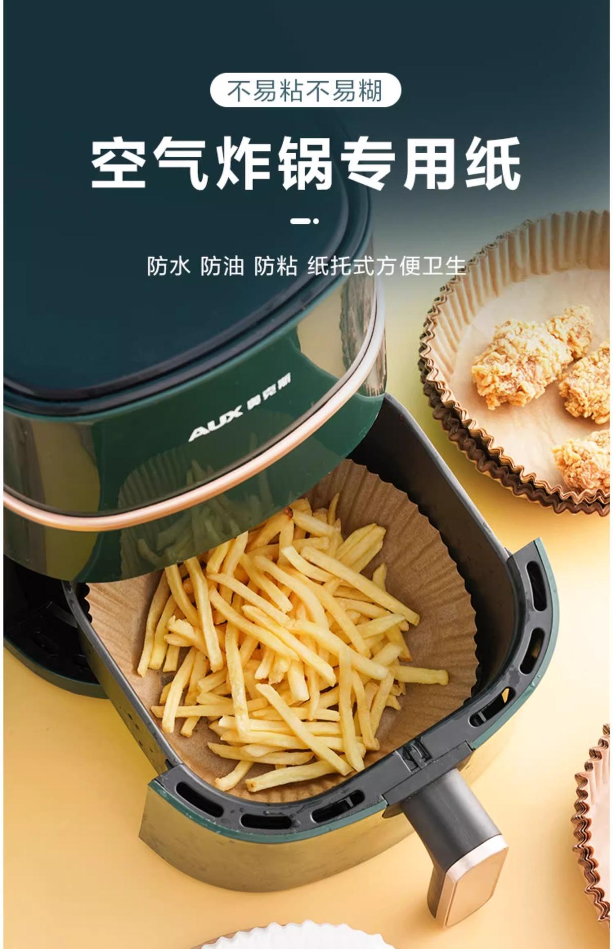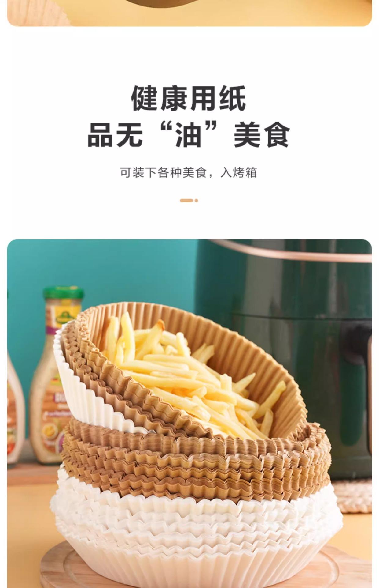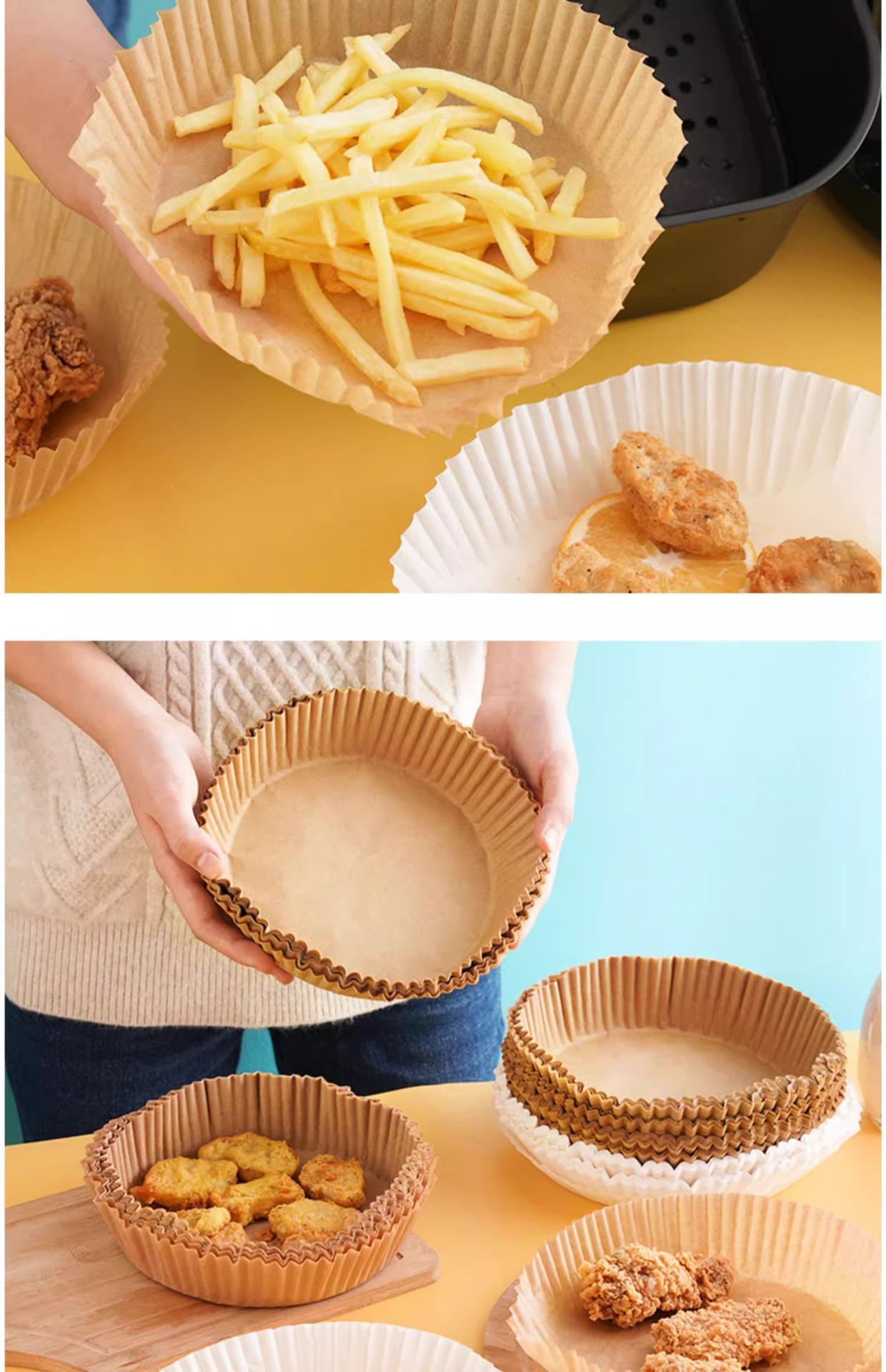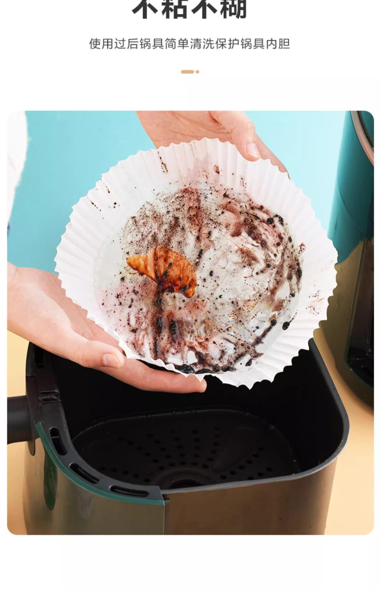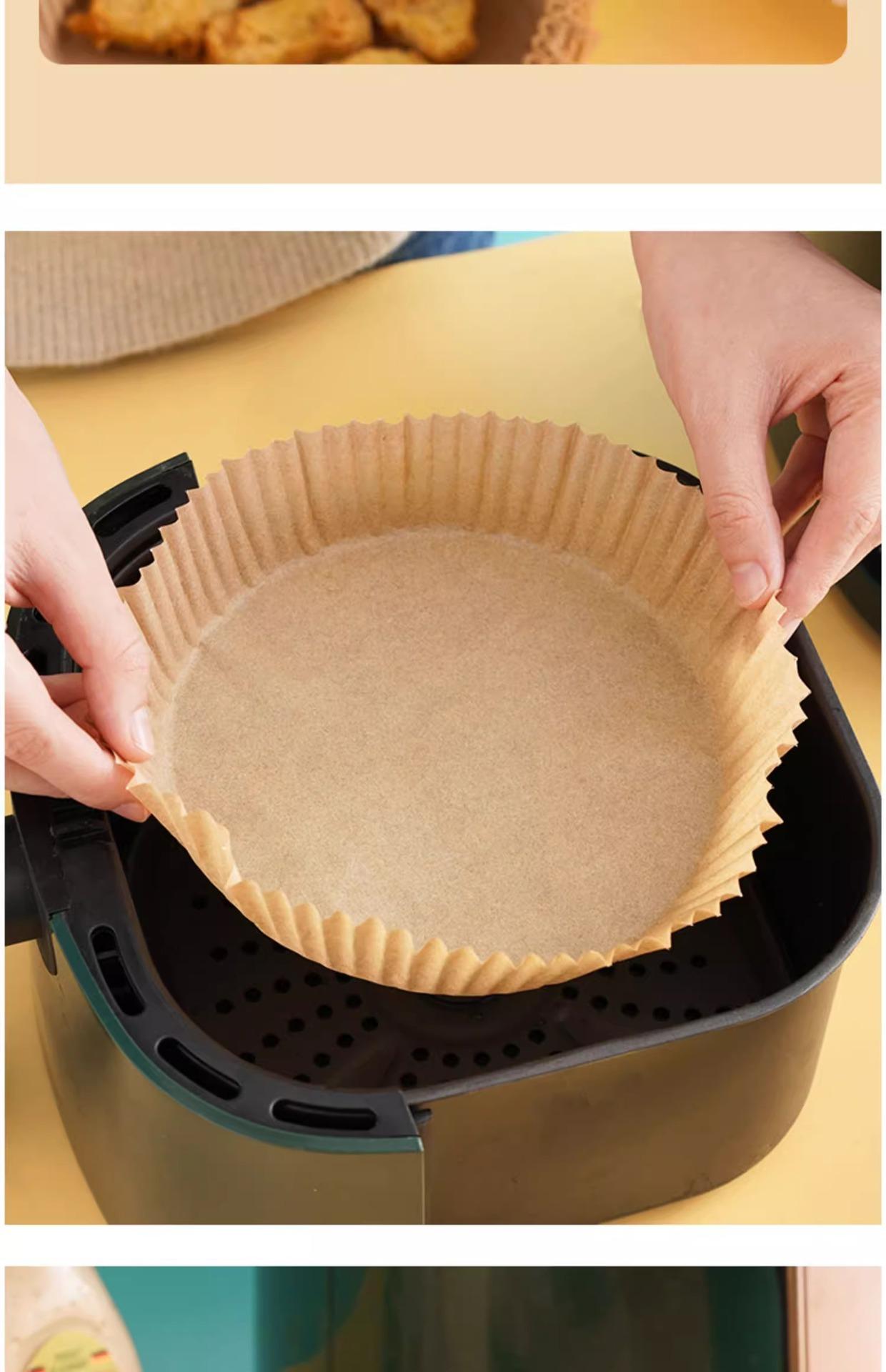 Plato de papel especial para freidora de aire doméstica, resistente a altas temperaturas, absorbente de aceite, para hornear alimentos en horno, papel de silicona para aceite, barbacoa, redondo