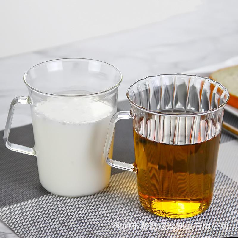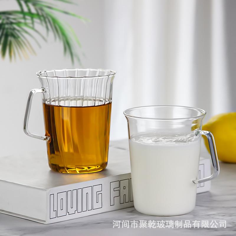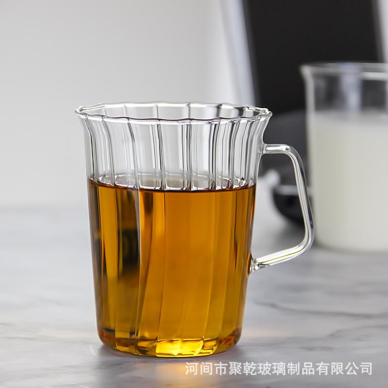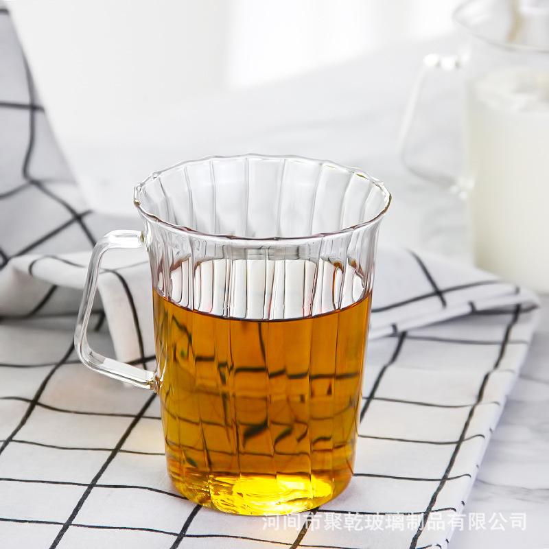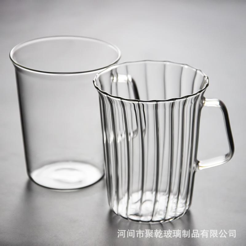 Compra Taza de té verde simple transfronteriza de vidrio rayado transparente incoloro con taza de vidrio abierta de vidrio de una sola capa al por mayor en Joom.pro