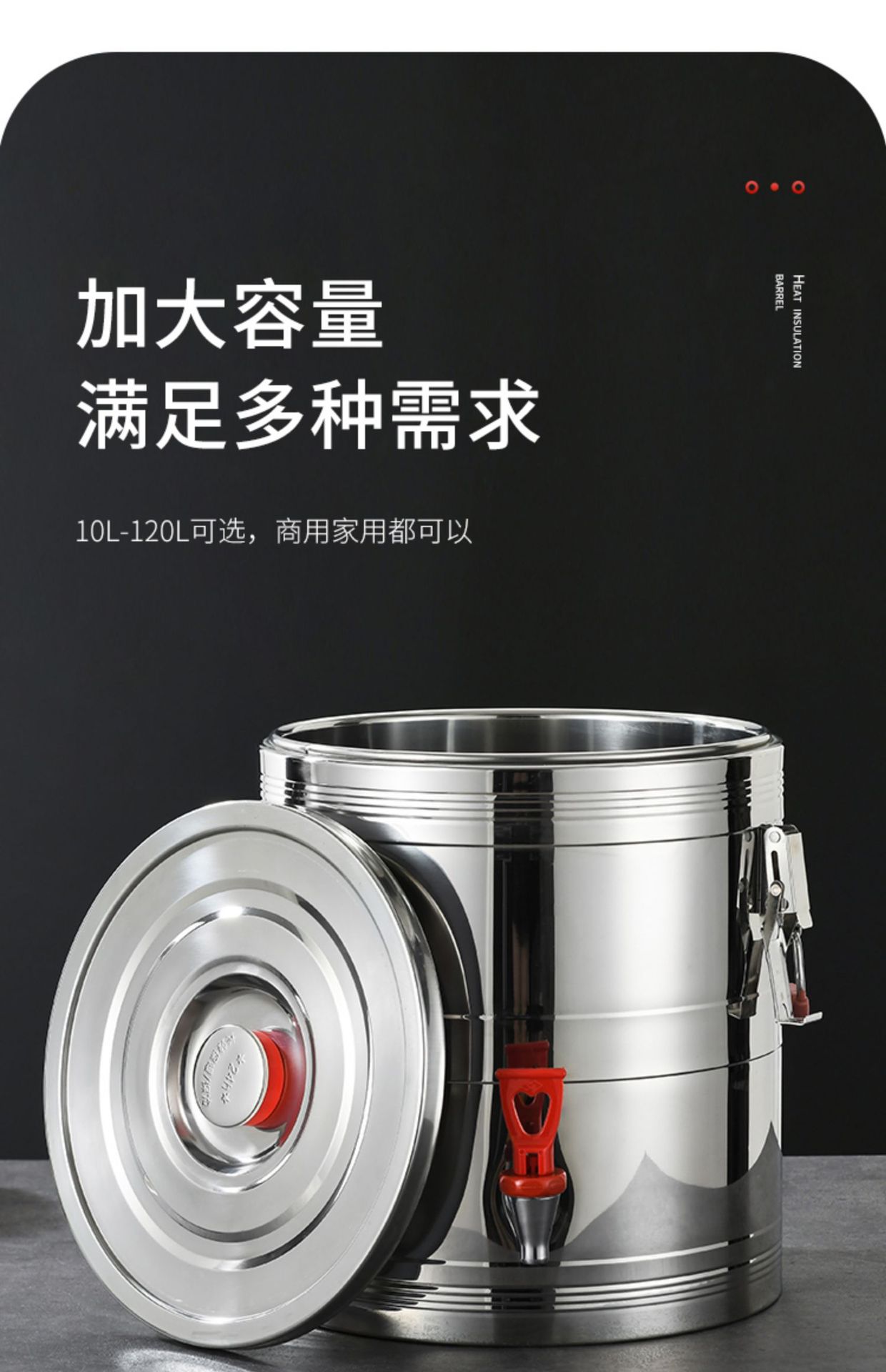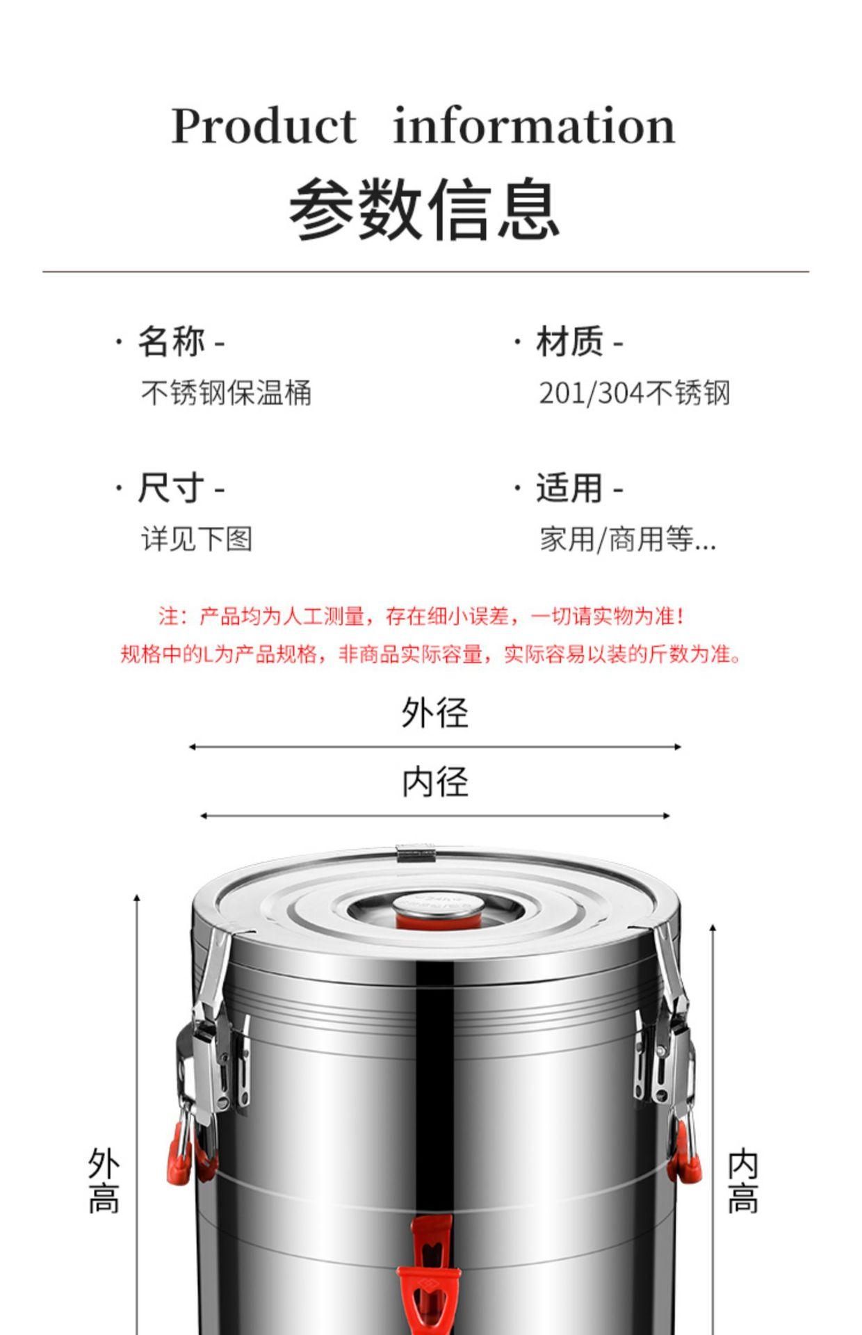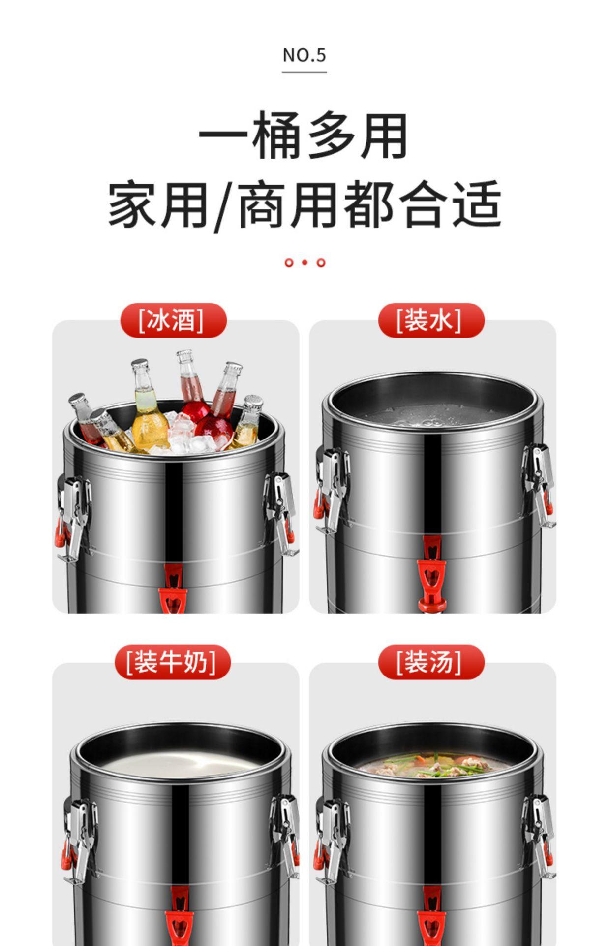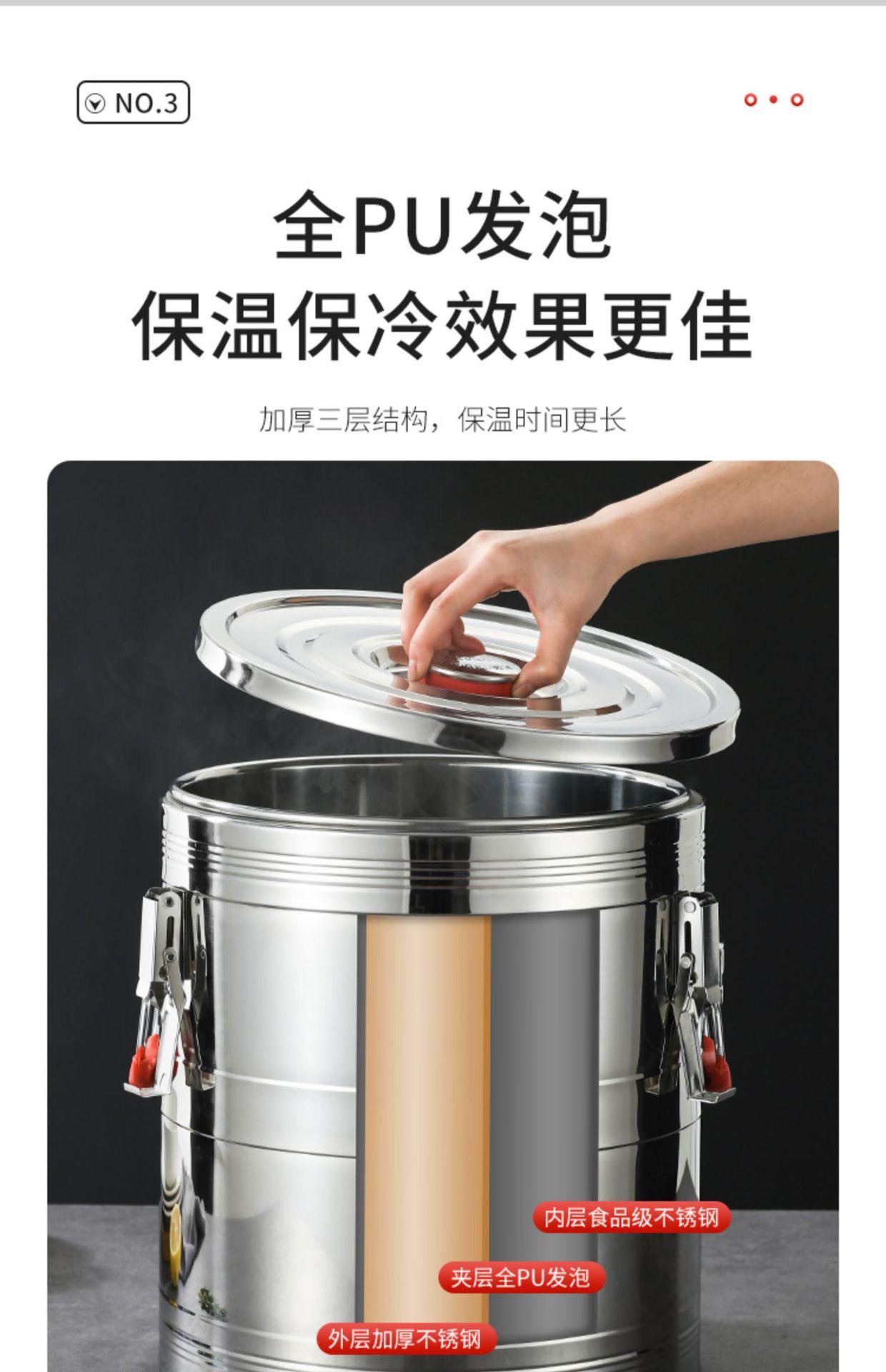 Cubo de aislamiento de acero inoxidable 304, cubo de arroz, cubo de leche de soja, cubo de hielo en polvo de gran capacidad, cubo de té con leche para puesto comercial, cubo de té