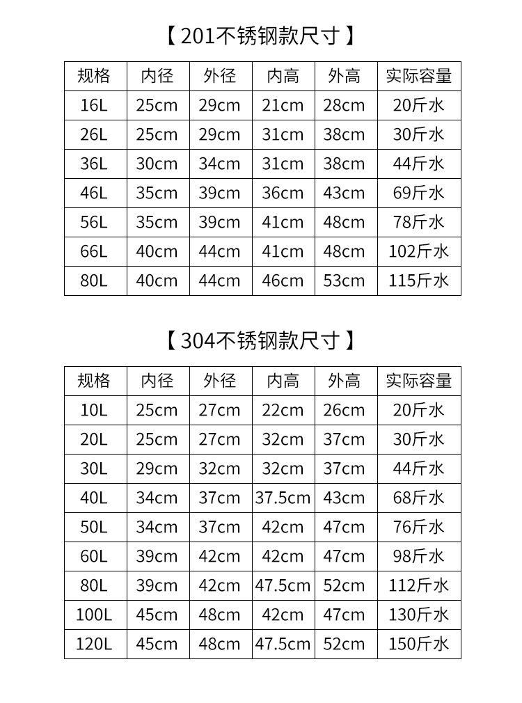 16L No faucet with 20kg of water, 16L single tap for 20kg of water, 26L 30kg of water without faucet, 26L sing...