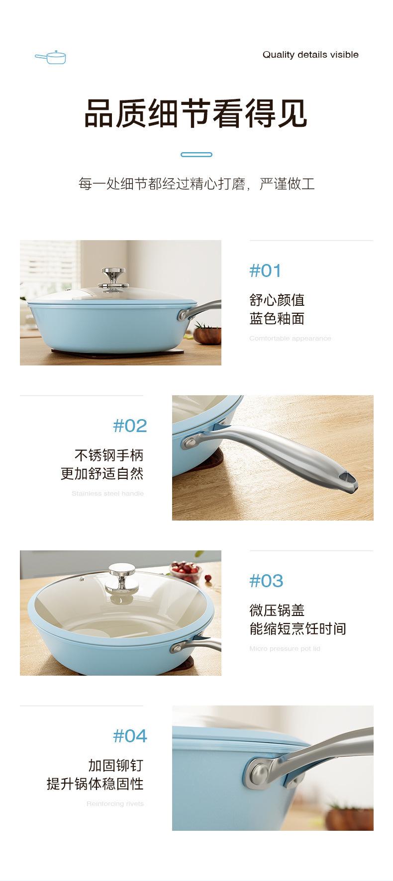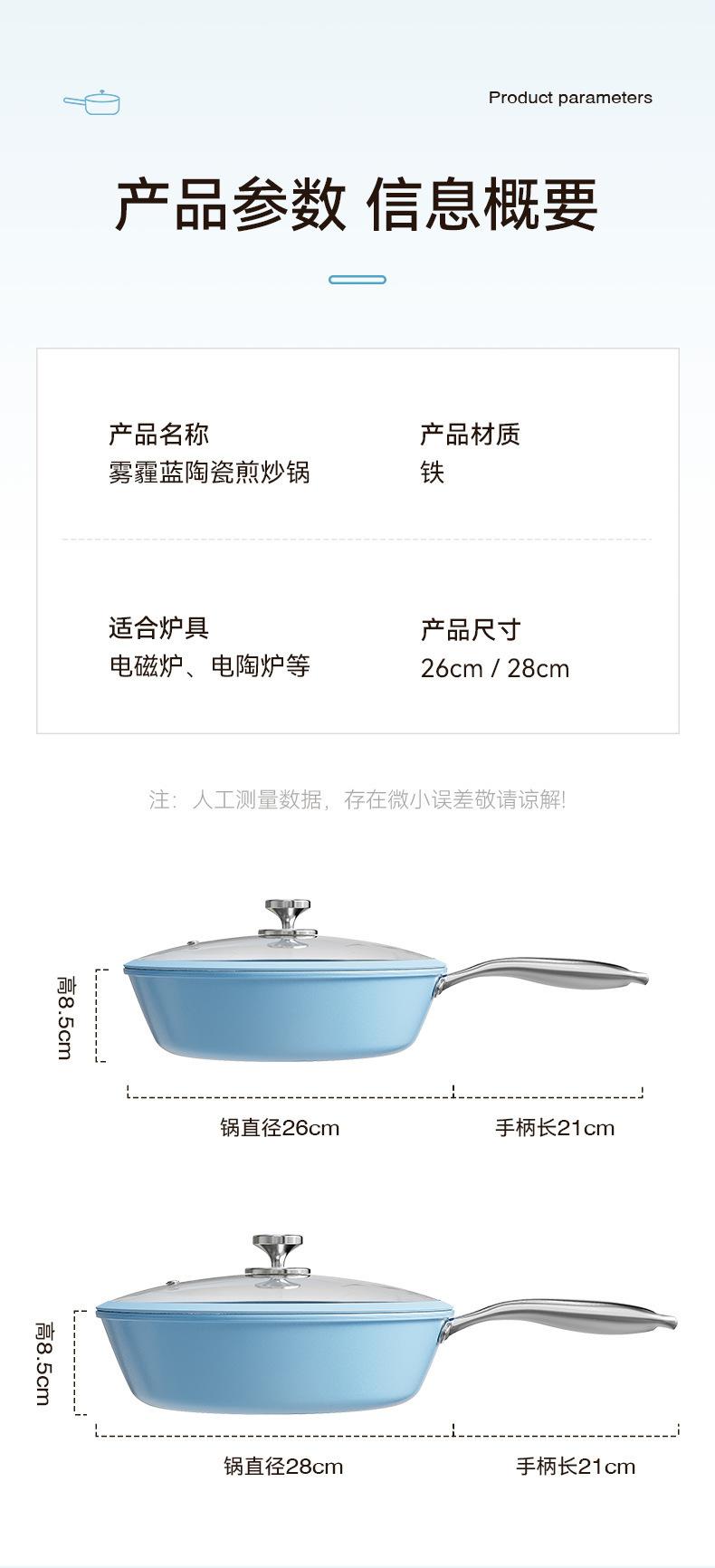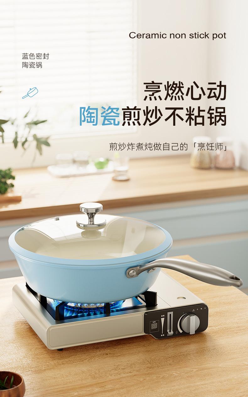 [autumn blue] 26cm ceramic wok + tempered lid, [autumn blue] 28cm ceramic wok + tempered lid