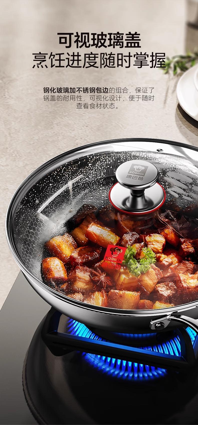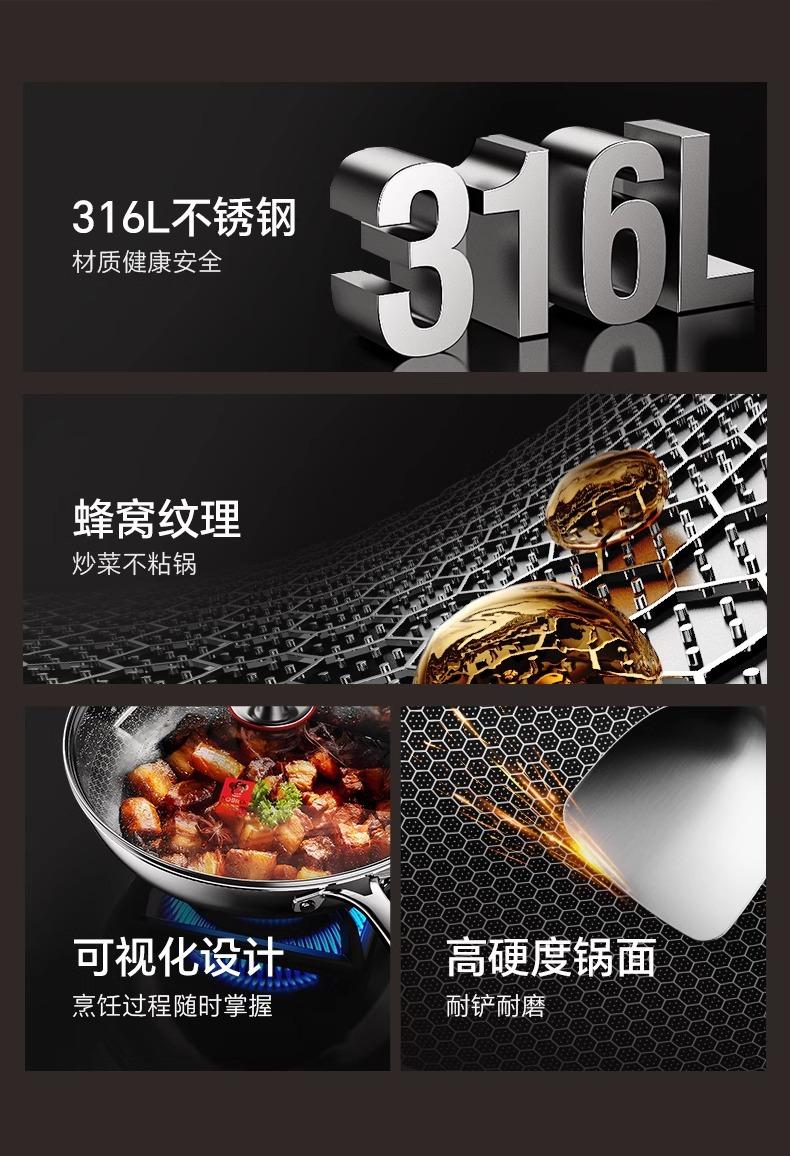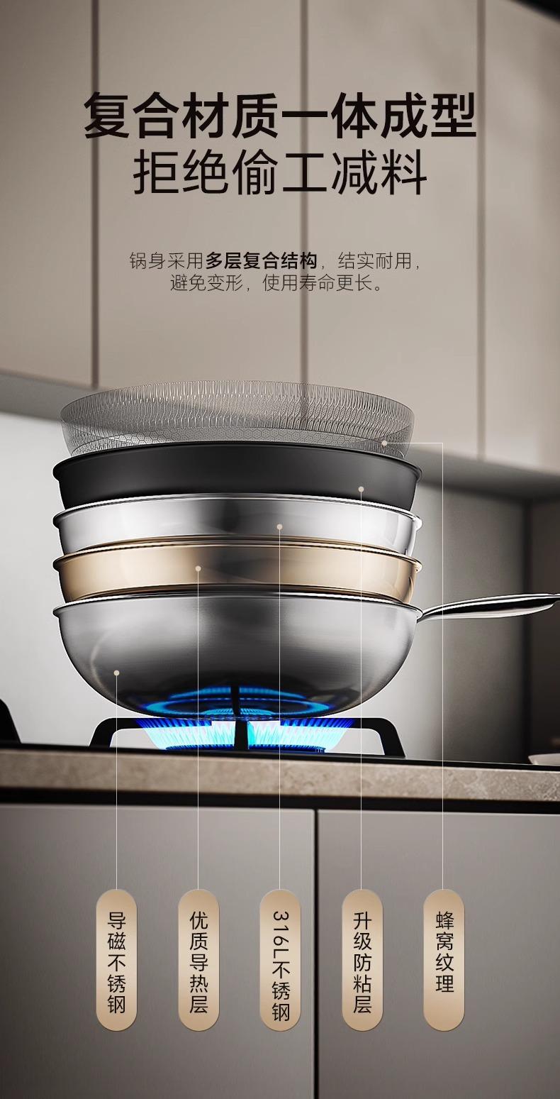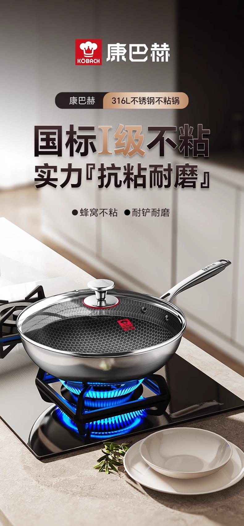 Sartén antiadherente Kangbach para el hogar, wok de acero inoxidable 316 con diseño de panal, antiadherente, para cocina de inducción y cocina de gas universal.
