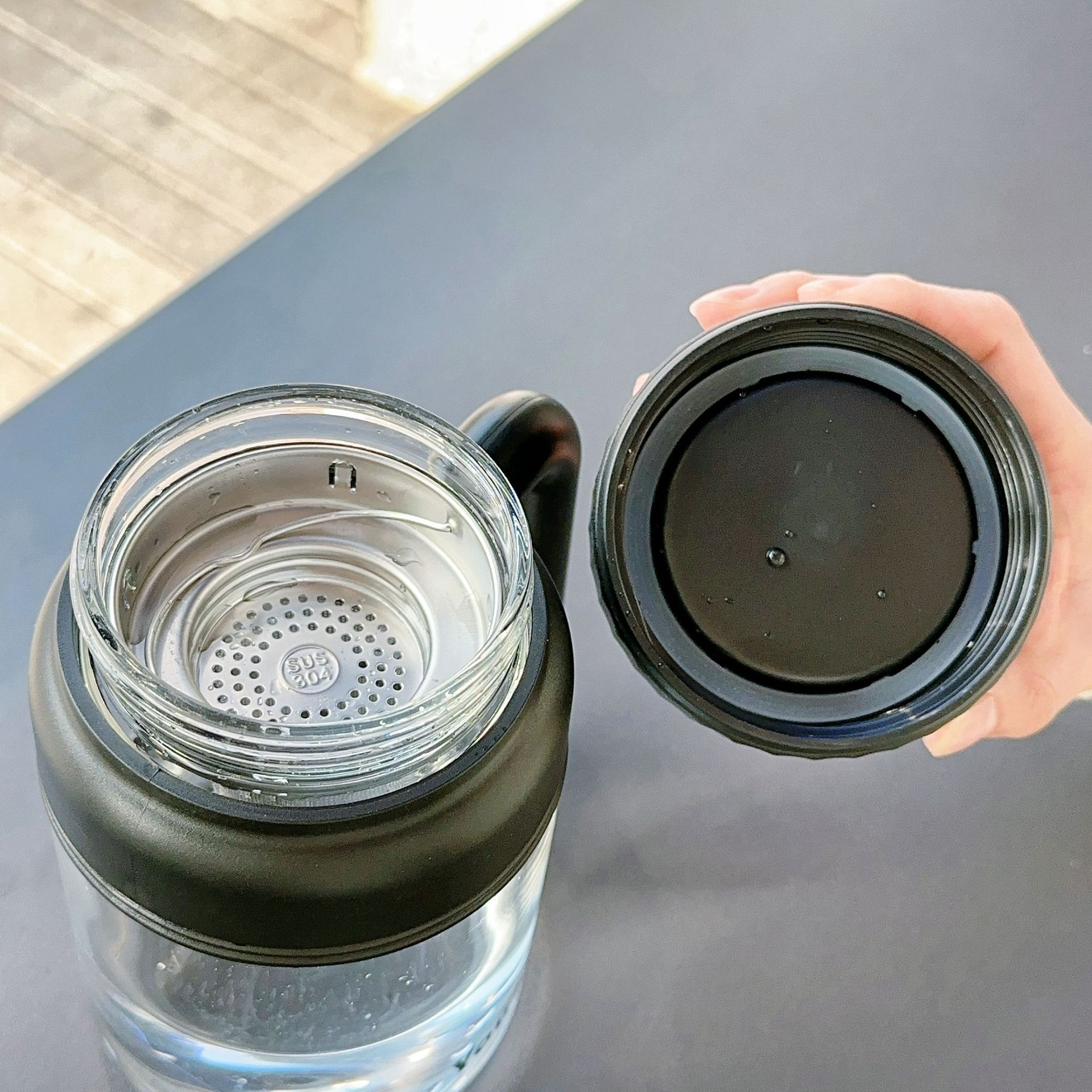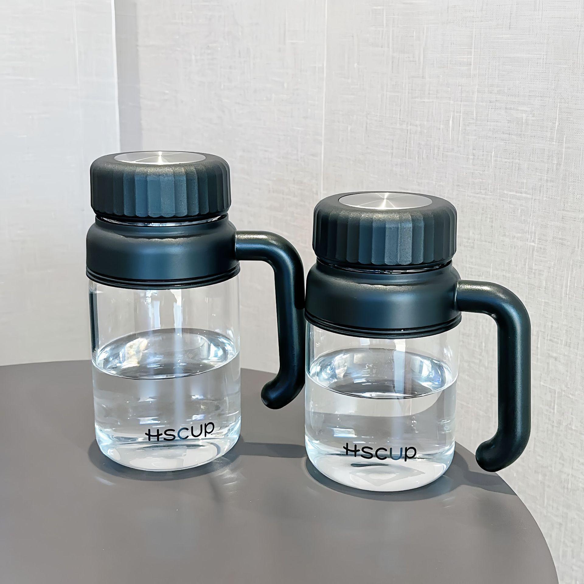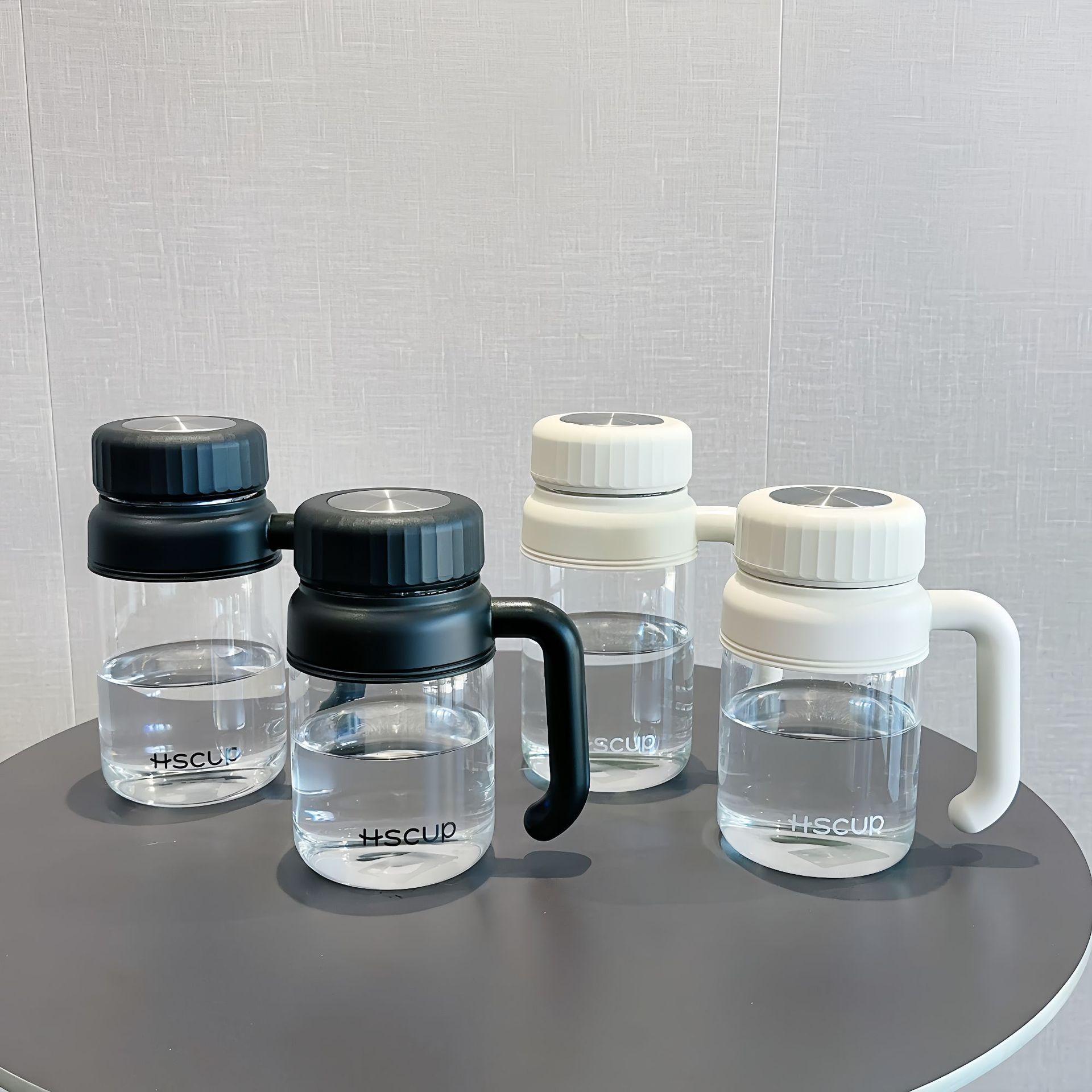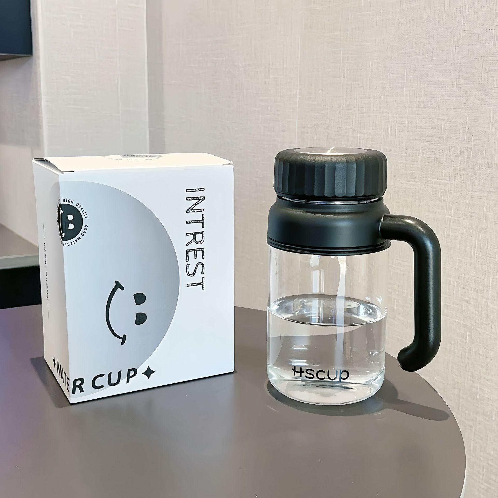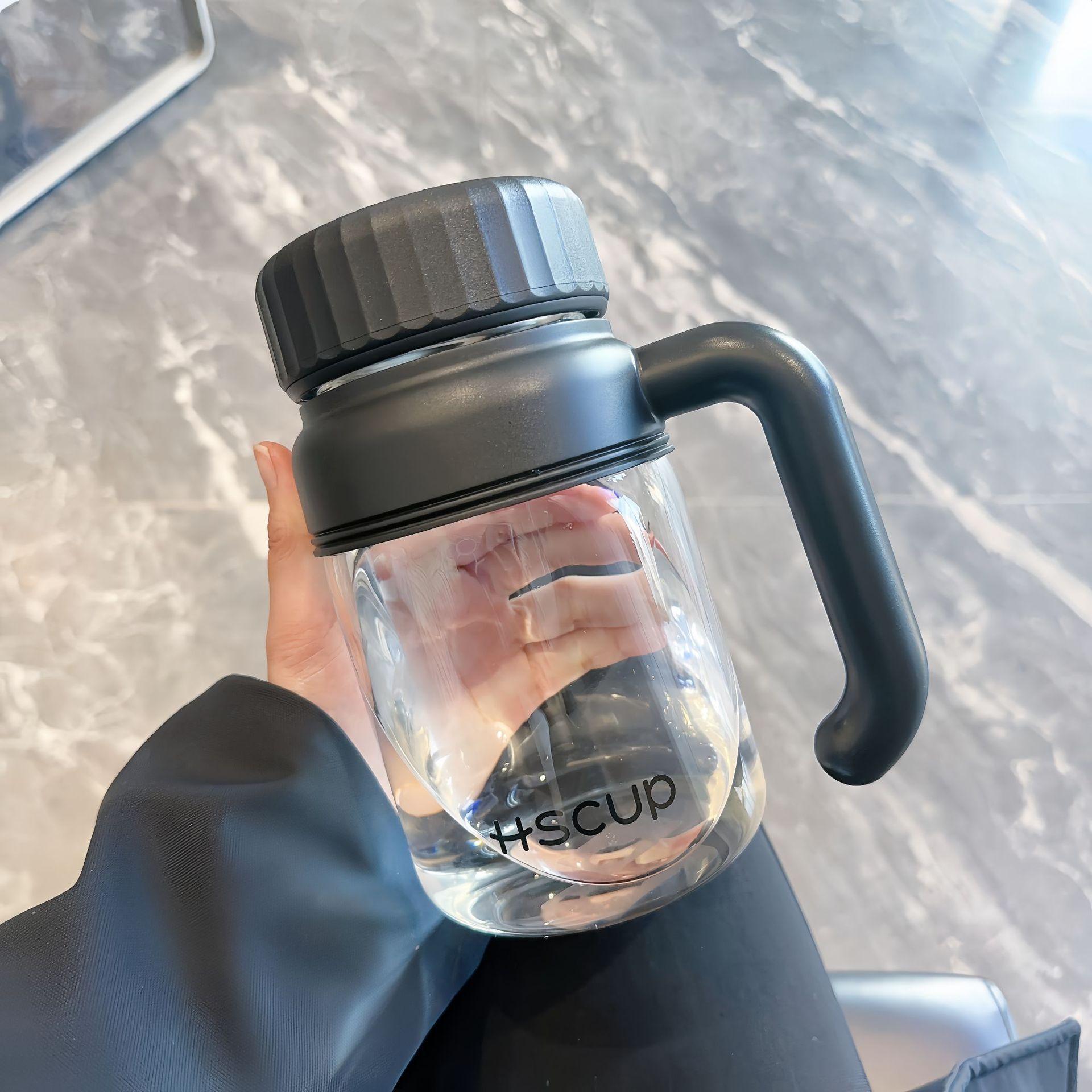 Taza de agua simple de gran capacidad, taza de vidrio de borosilicato alto, taza de té separada, alto valor de color, portátil con asa
