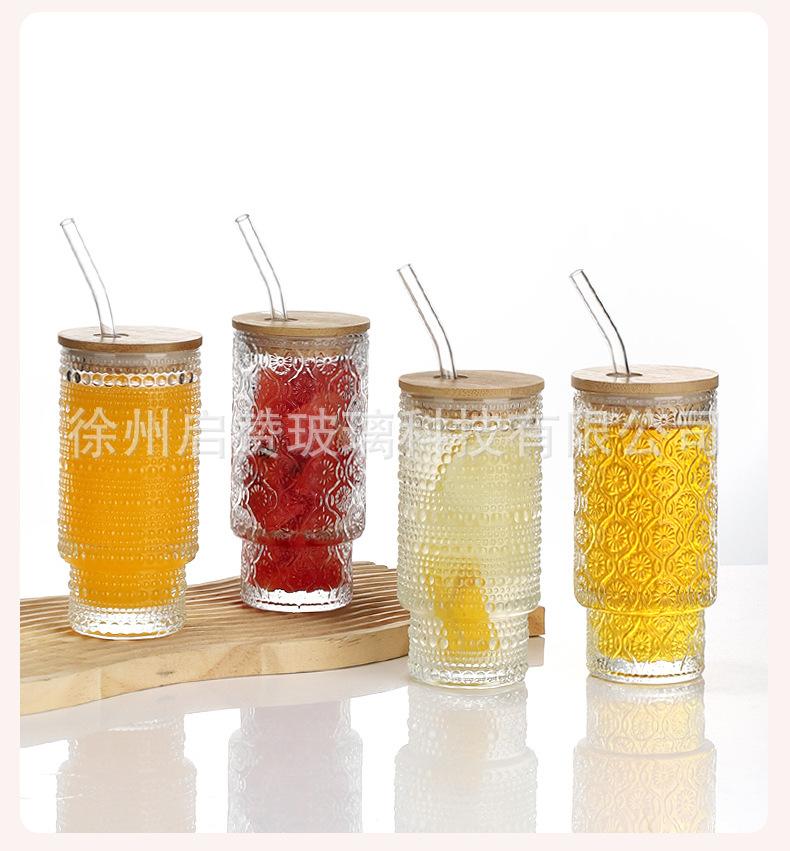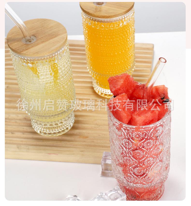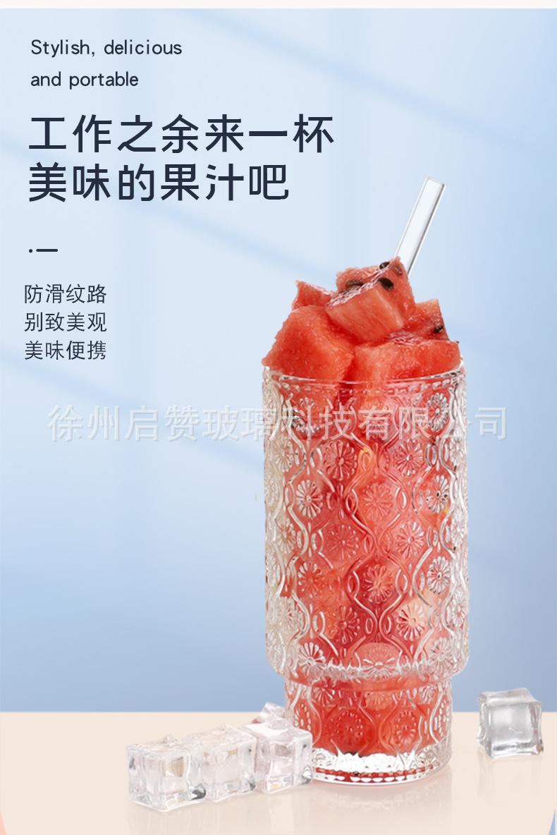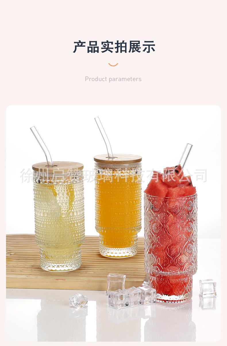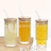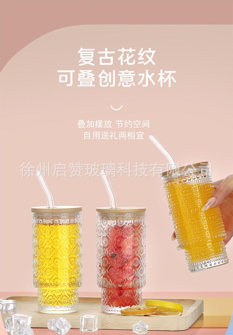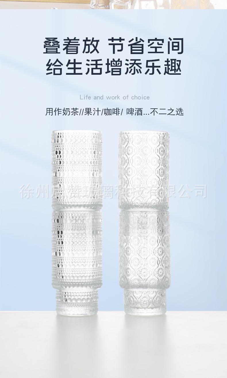 Vaso apilable vertical de 11 oz de Amazon, vaso creativo de vidrio grueso con tapa para bebidas, cerveza, jugo, leche, té.