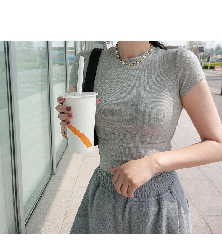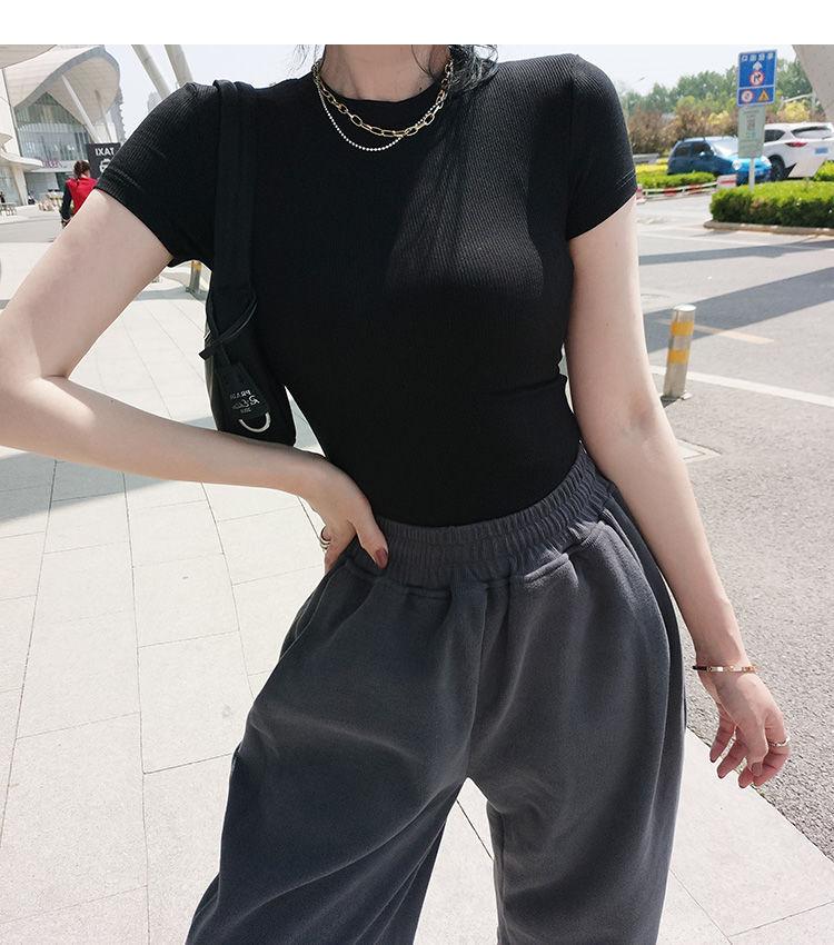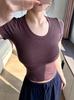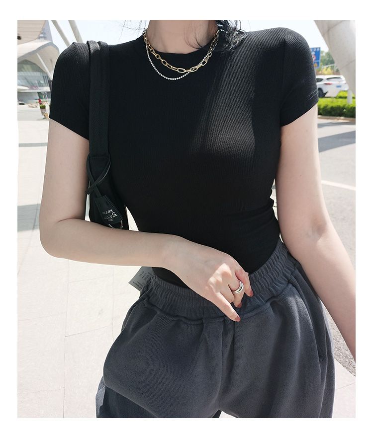 Camiseta ajustada de moda de verano 2025 para mujer, camiseta básica elástica de manga corta y corte entallado, top corto interior