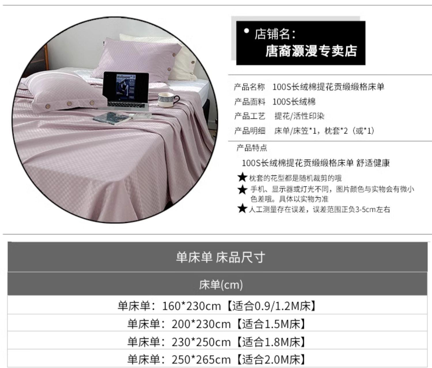 Single piece of bed sheet-230x250cm [suitable for 1.5-1.8m bed]