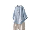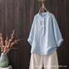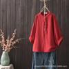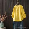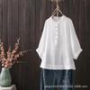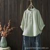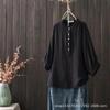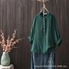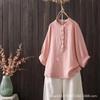 Blusa de manga media sencilla de hilo de algodón de doble capa con cuello alto, elegante y artístico retro para mujer, nueva camisa holgada a juego para primavera y verano