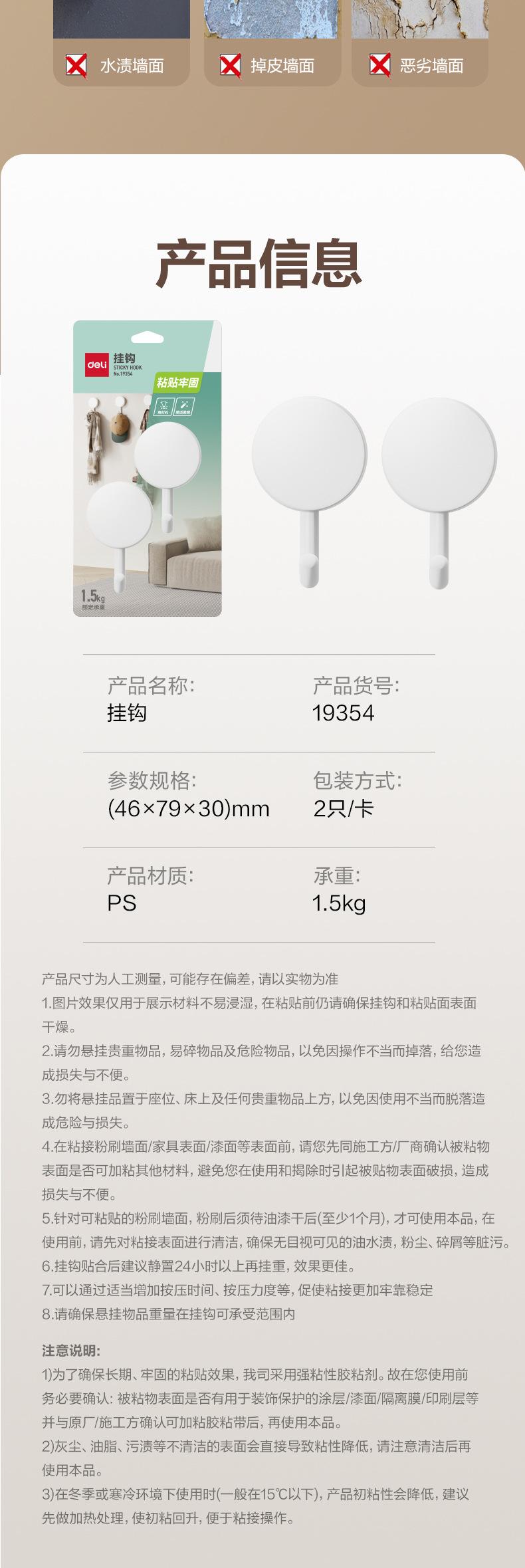 Gancho Deli 19354 de viscosa resistente para cocina, baño, sin perforaciones, venta al por mayor