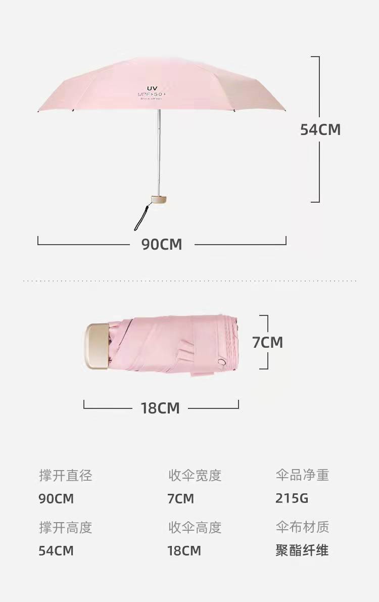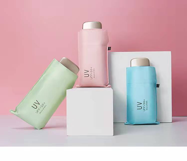 | Sombrilla de protección solar anti-ultravioleta para mujer, venta al por mayor, color sólido, 50% de descuento, mochila compacta, mini, plegable, tarjetero, sombrilla | |